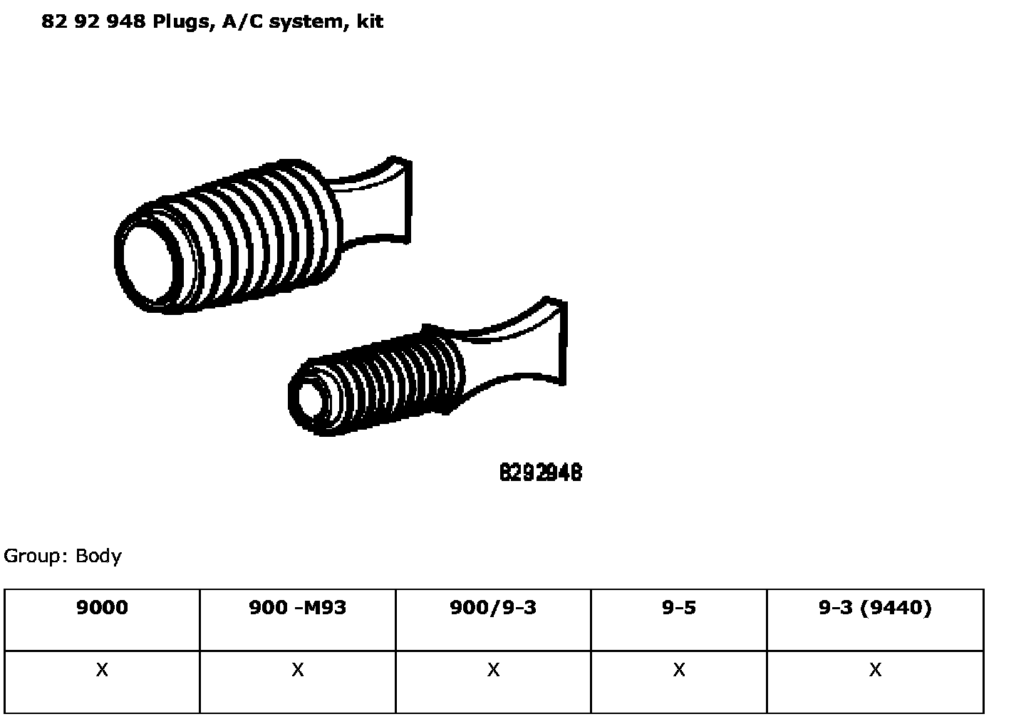82 92 948 Plugs, A/C System, Kit: