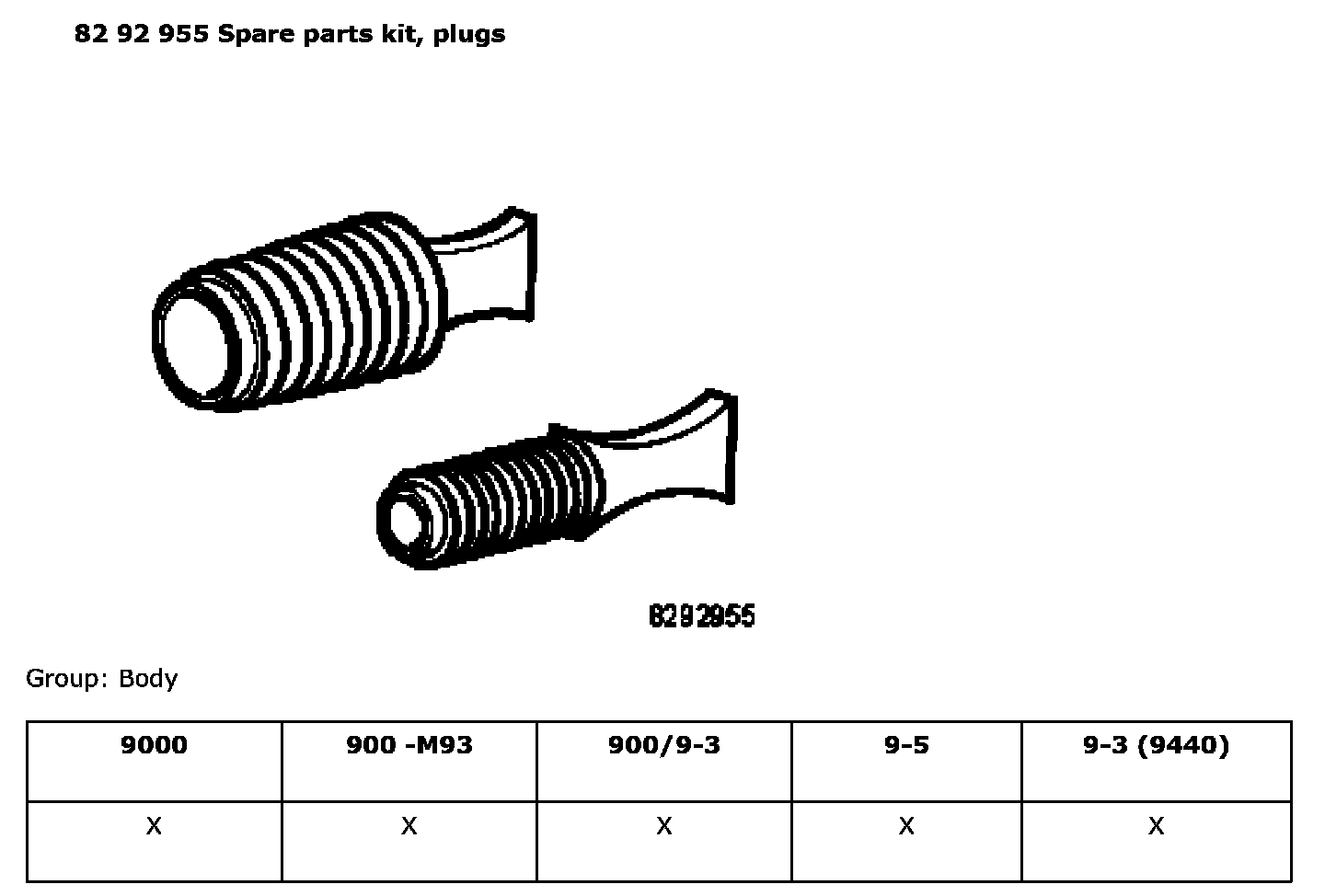 82 92 955 Spare Parts Kit, Plugs: