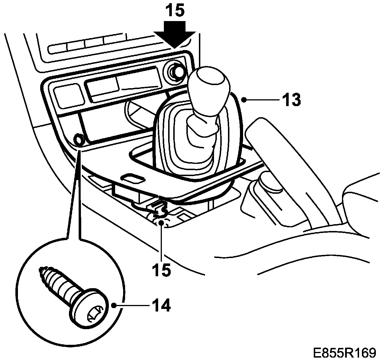 13. Manual gearbox: Lift up the gear lever gaiter.