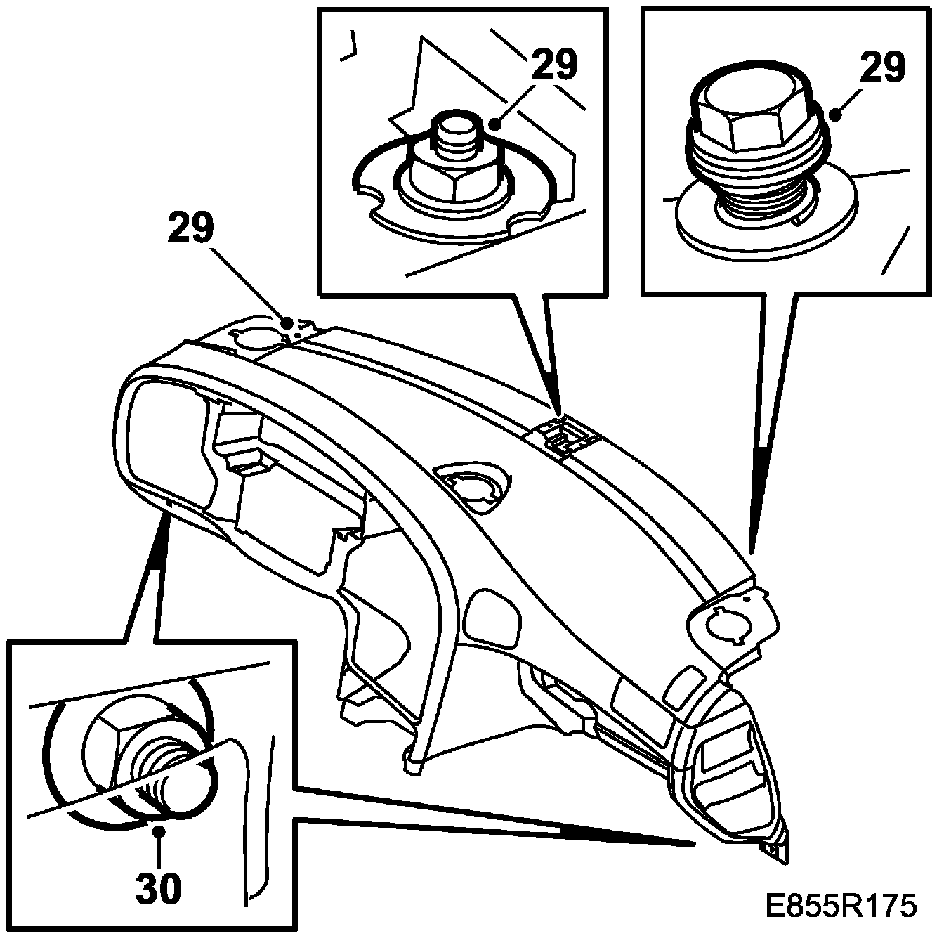 29. Unscrew the upper edge of the dashboard, 2 screws and 1 nut.