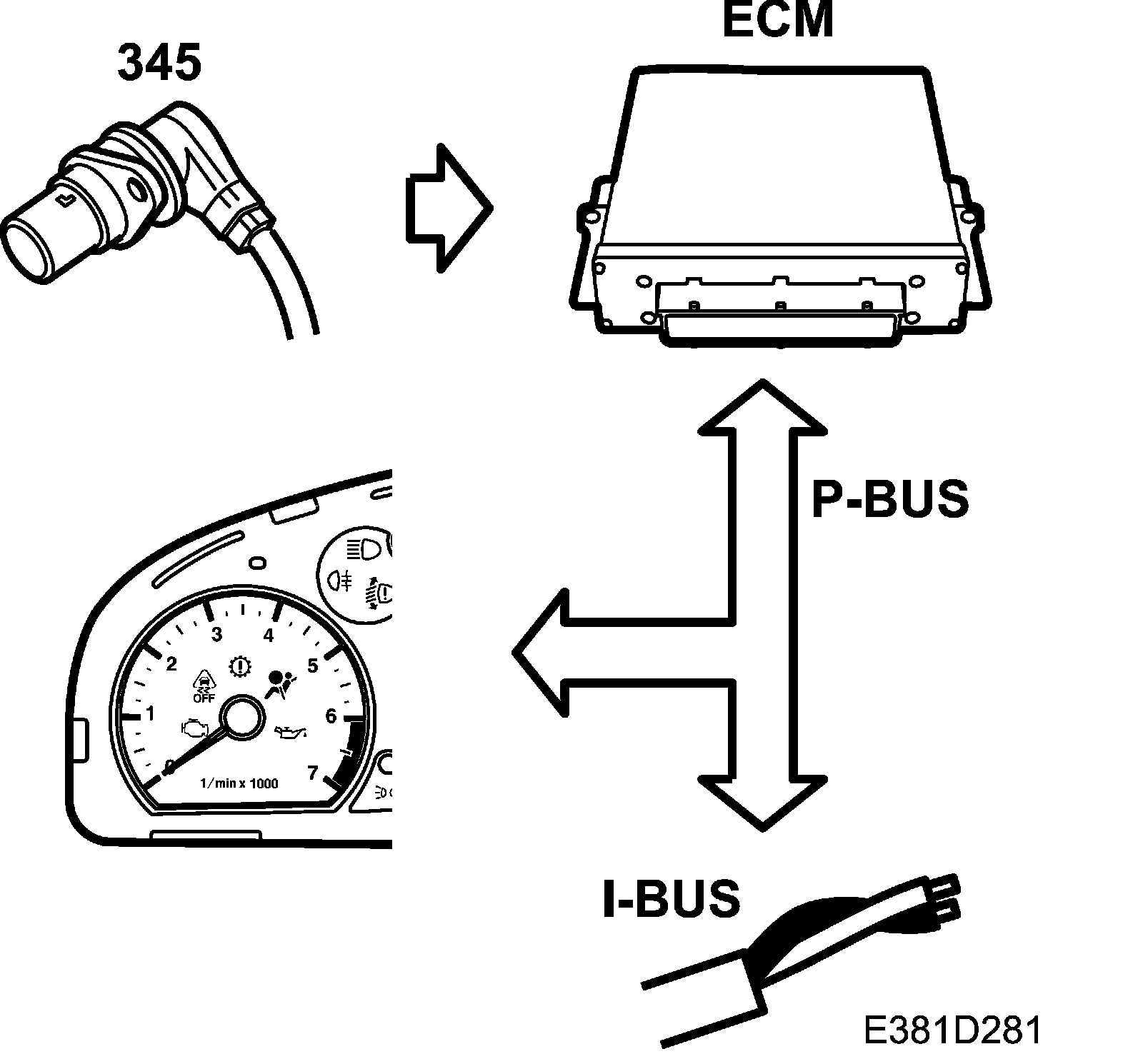 The main instrument is fitted with an electronic tachometer. The engine control module continuously sends information on the engine speed to the bus.