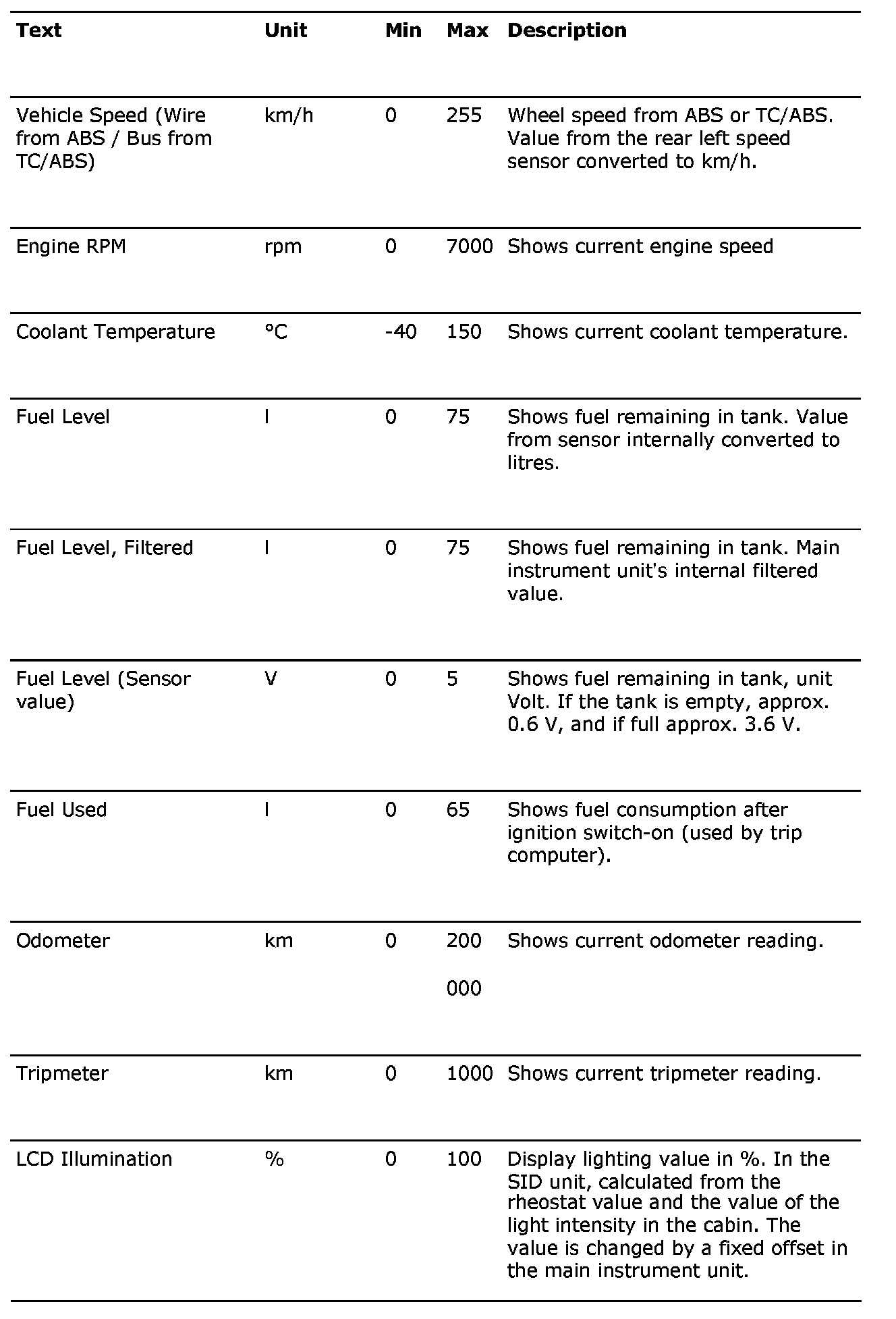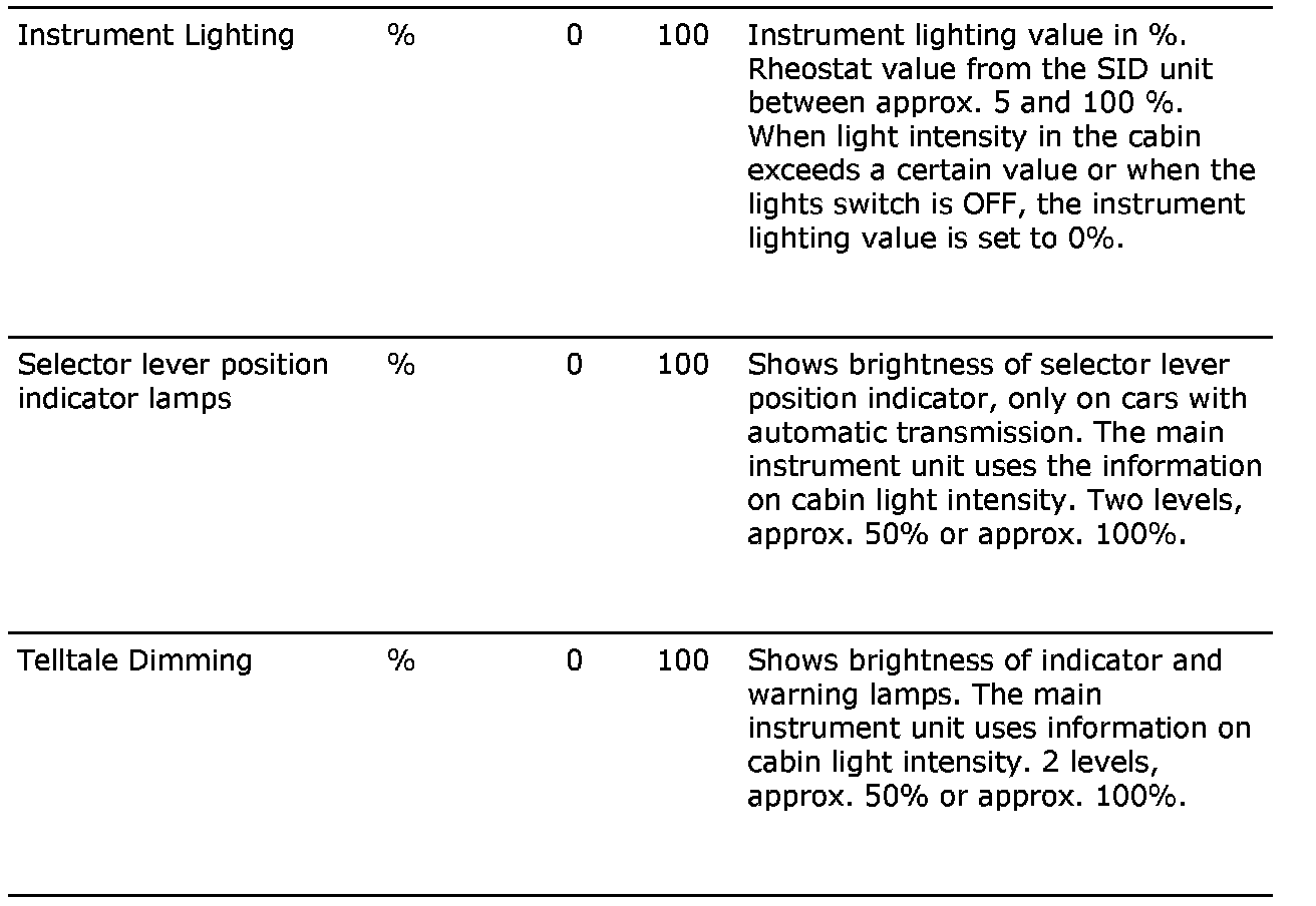 Menu Read Values