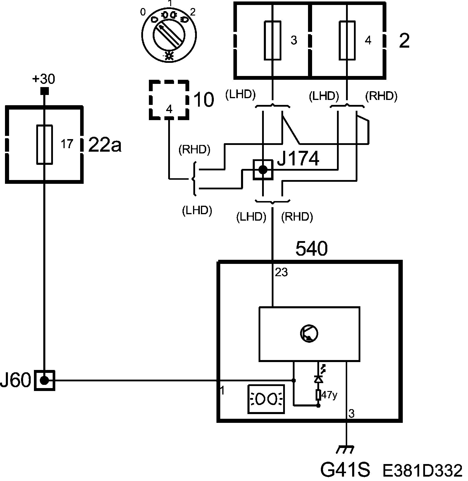 The lamp is grounded in the main instrument unit and supplied with current from the lights switch.