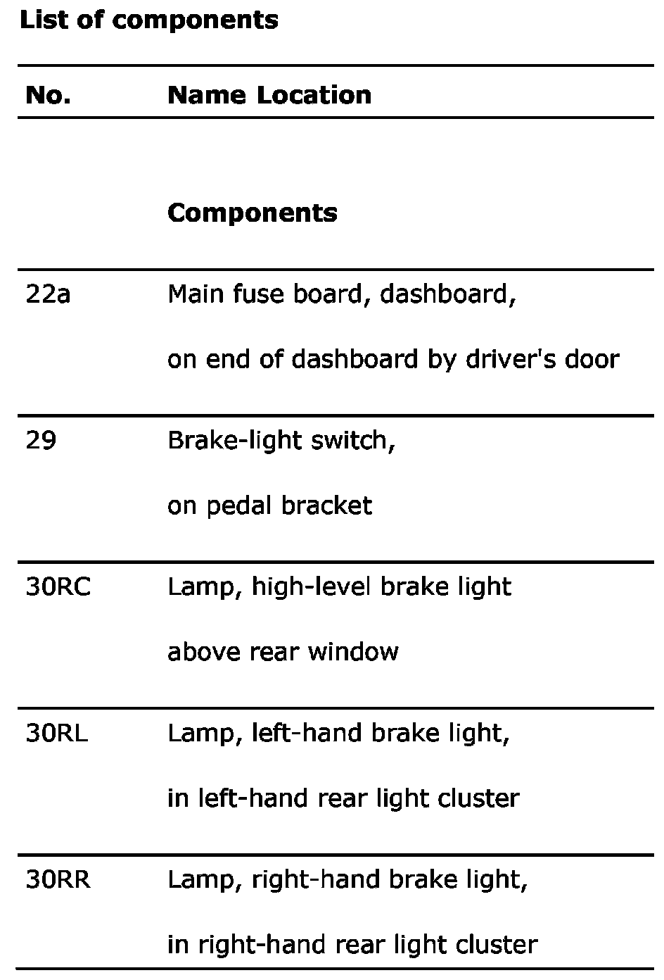 List of components (Part 1):
