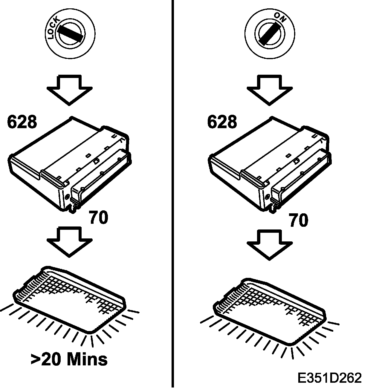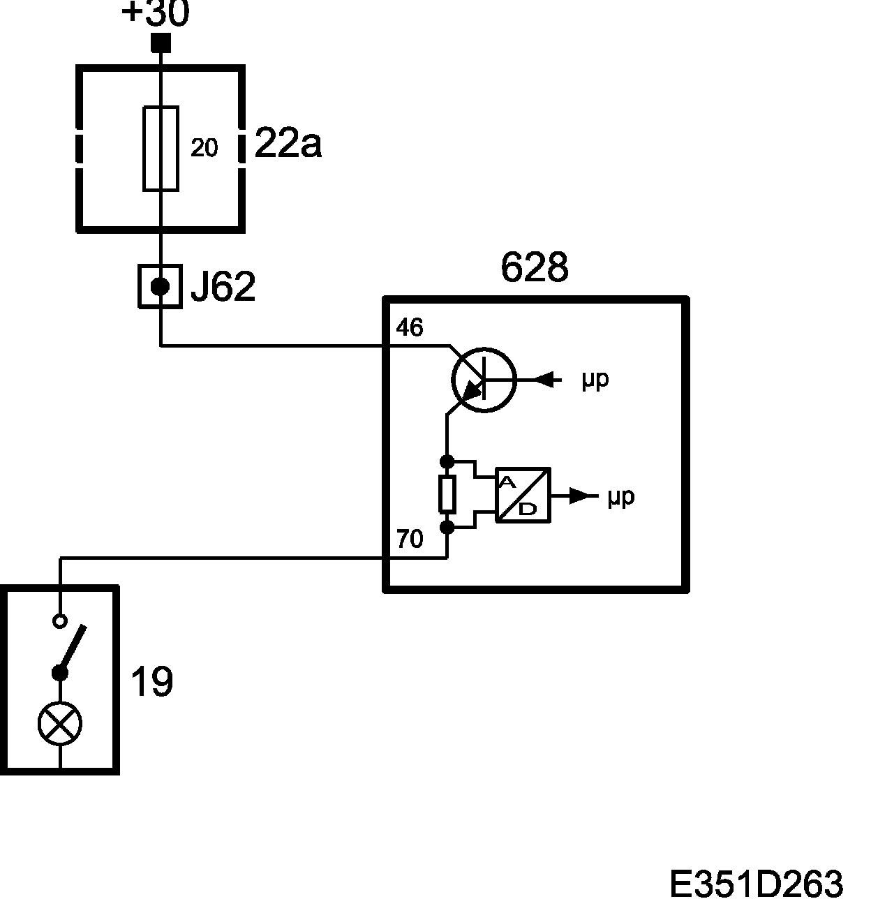 Voltage +30 for the glove-box lighting is always fed to DICE via fuse 20. Power is fed from pin 70 on the control module to the lamp (19).