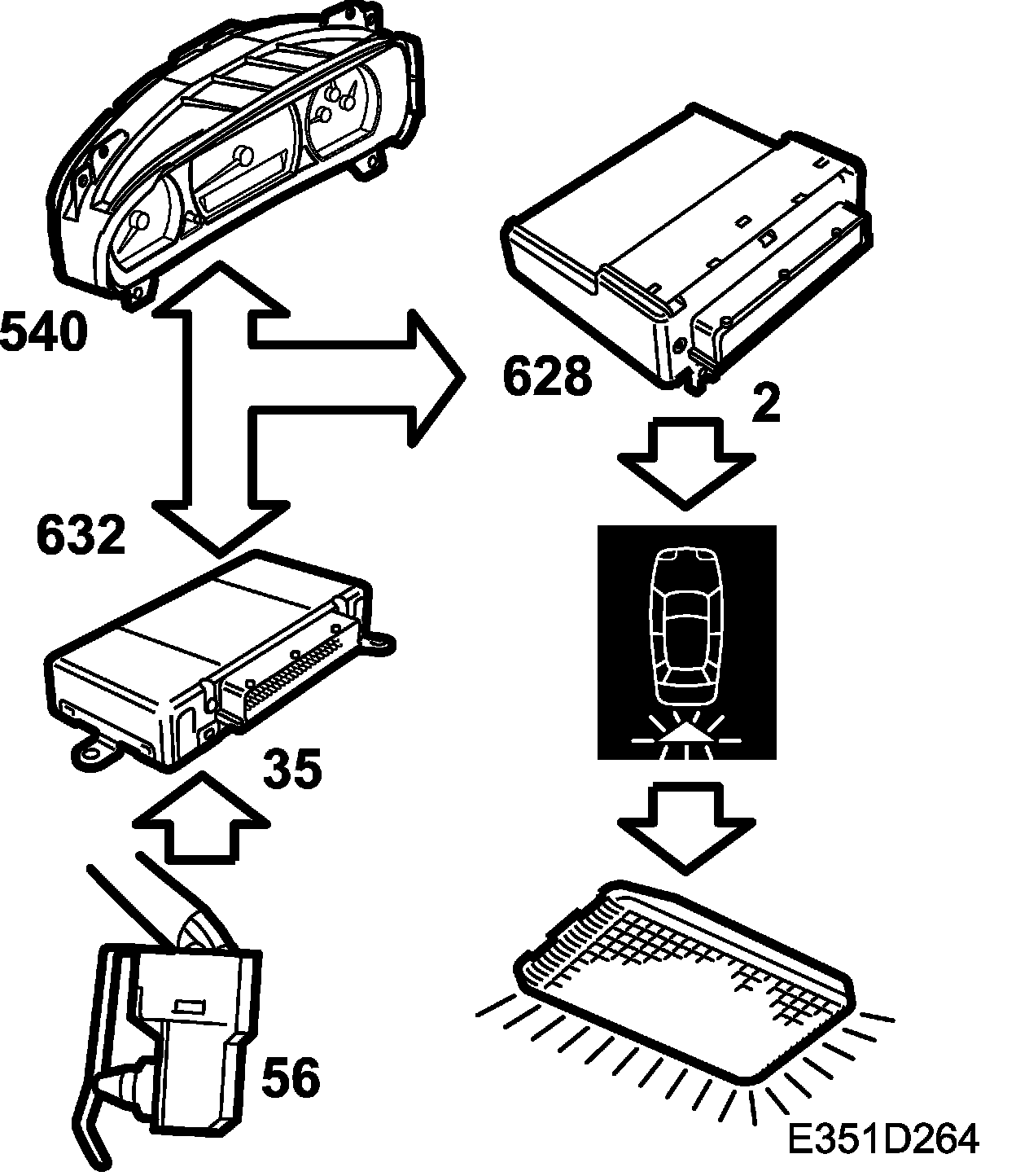 When the luggage compartment lid is opened a light switch (56) in the lock of the lid will close. The switch is connected to TWICE, which detects whether the lid is open or closed.