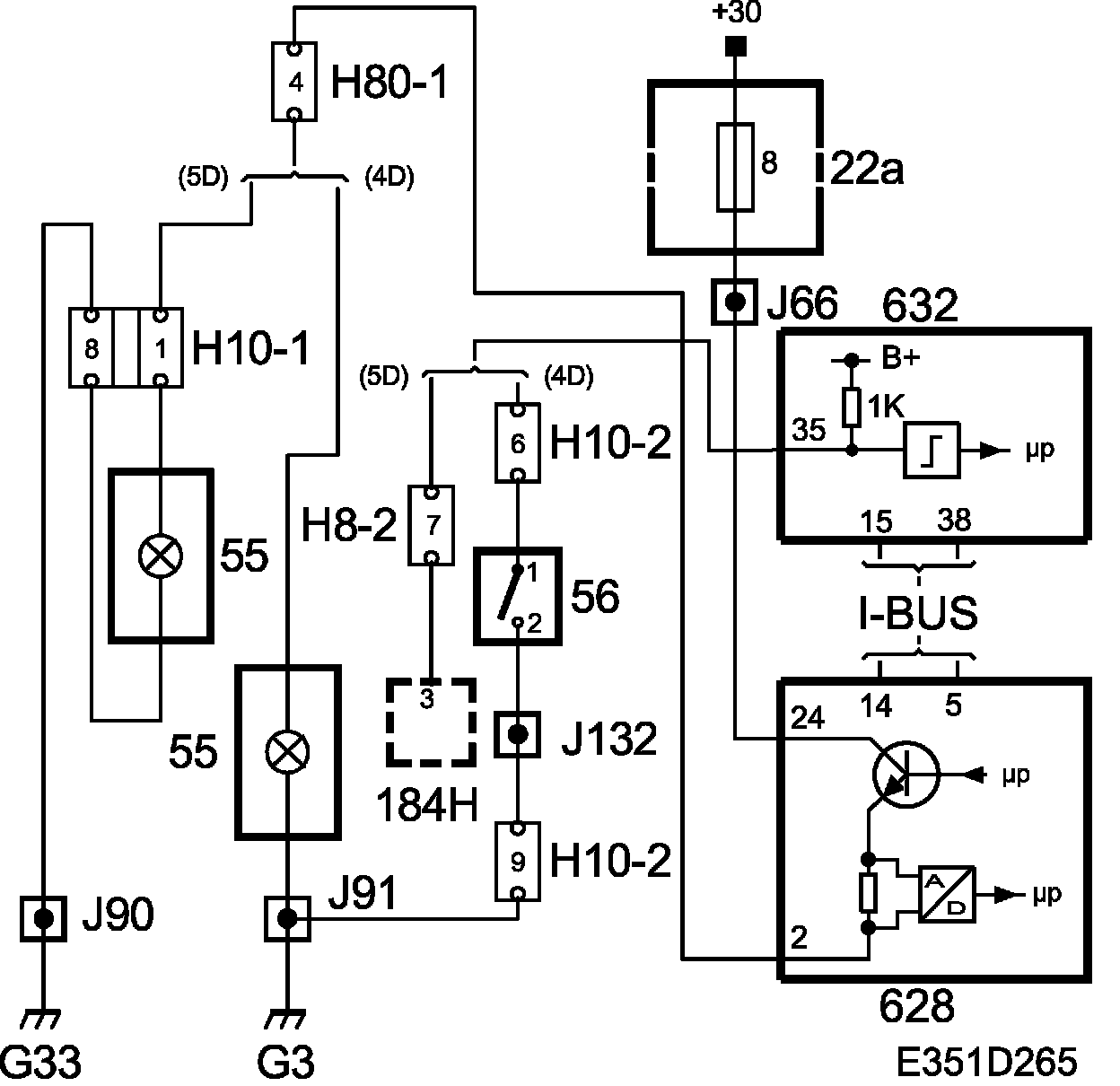 TWICE puts information on the status of the lid (OPEN/CLOSED) onto the bus, and DICE receives it. If the lid is open, power goes from pin 2 on DICE to the lamp (55). If the switch on the luggage compartment lamp has not closed, the lamp will not light up, irrespective of the status of the lid according to TWICE.