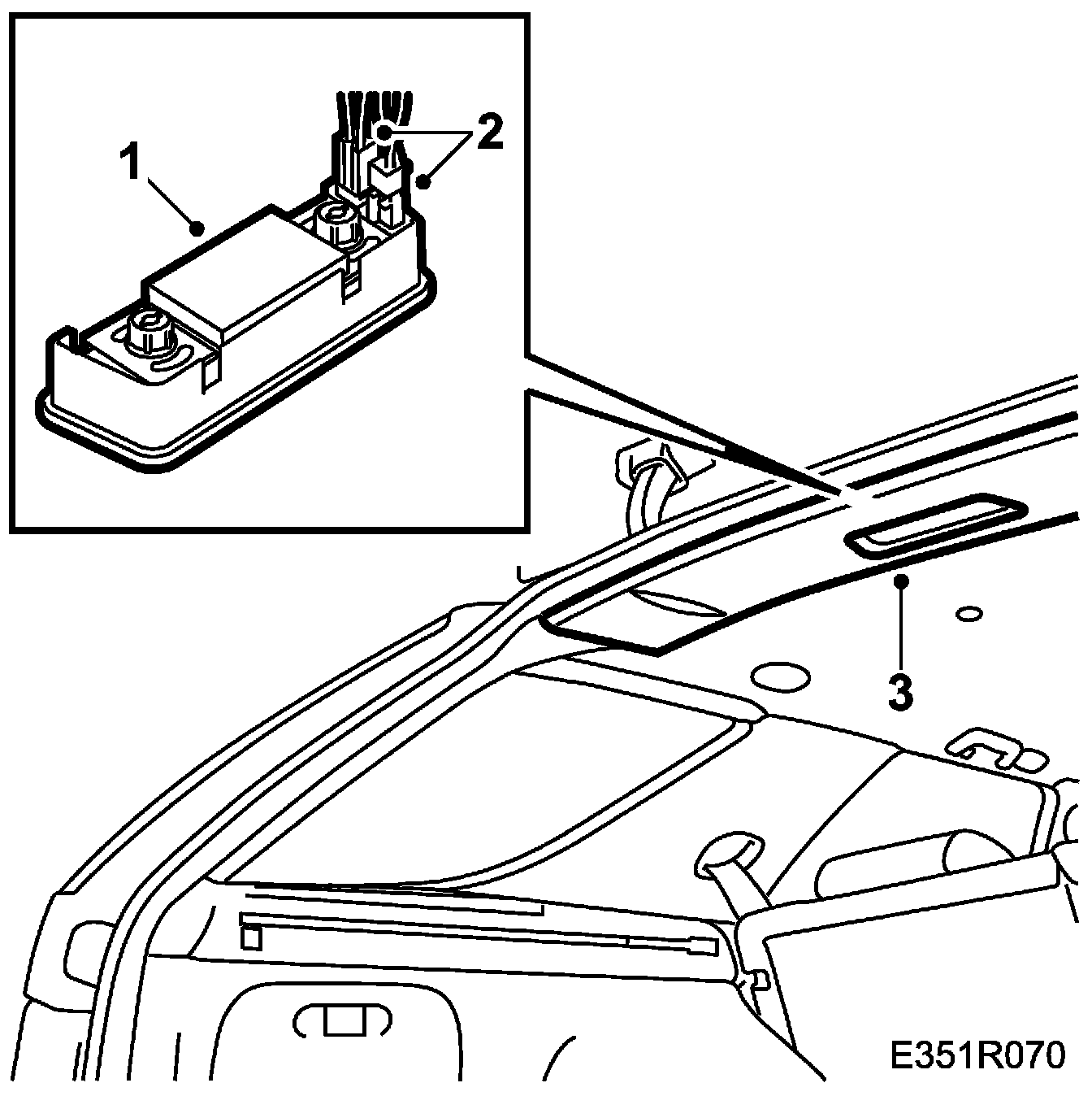 2. Plug in the luggage compartment illumination connector and position the roof cover plate.
