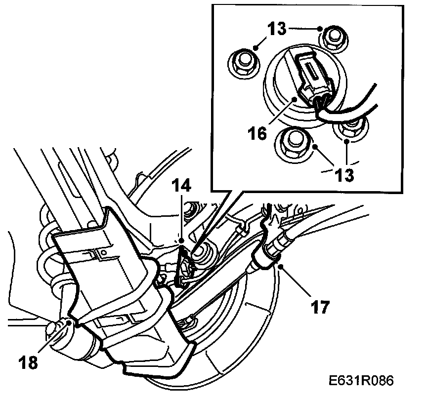 14. VIN X3025752-: Fit the mounting for the wheel sensor and the brake pipe.