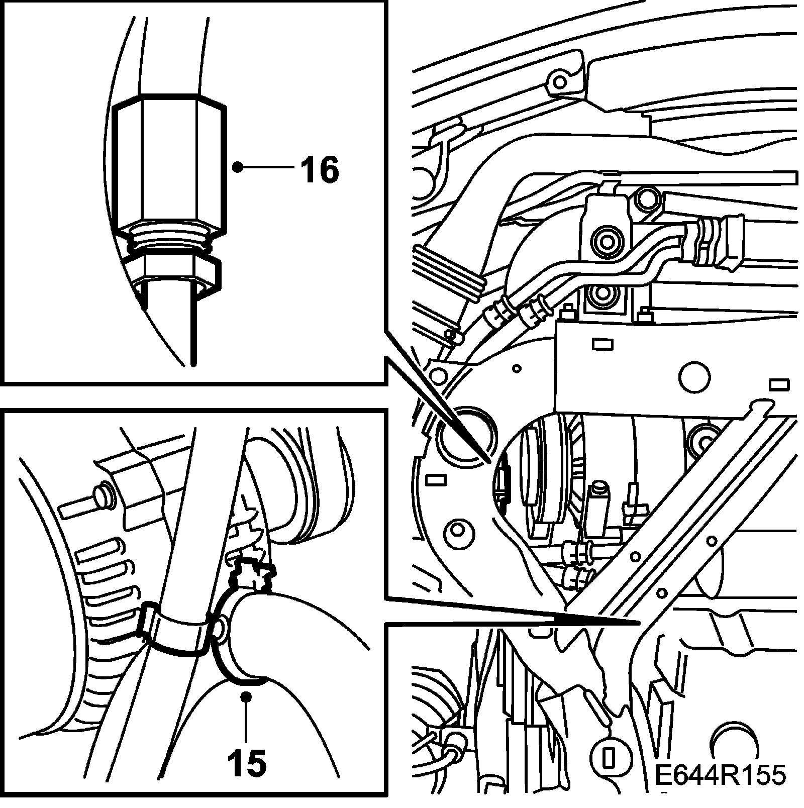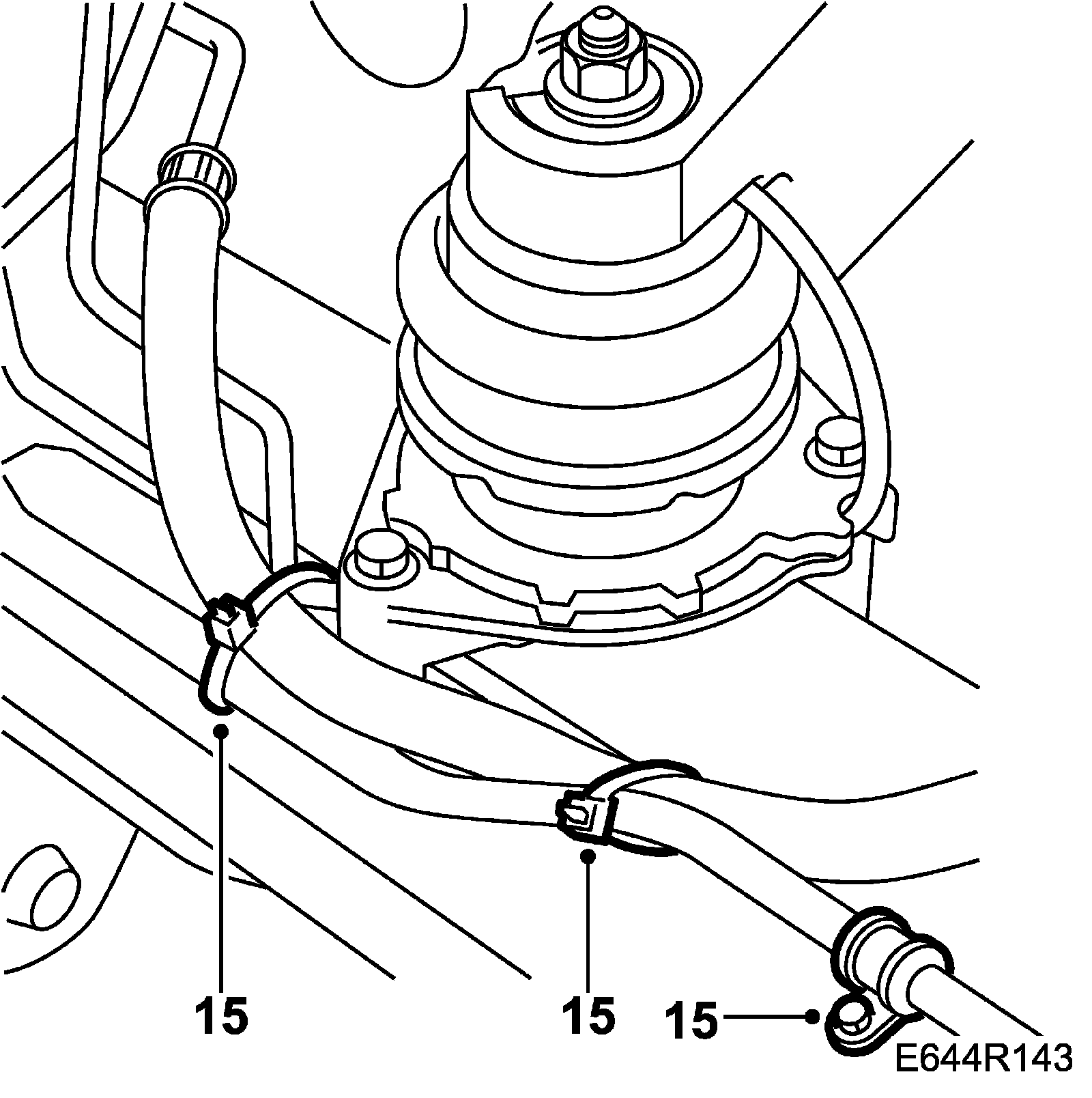 15. Fit a new tie with holder to the pressure hose. Fit the return hose to the holder.