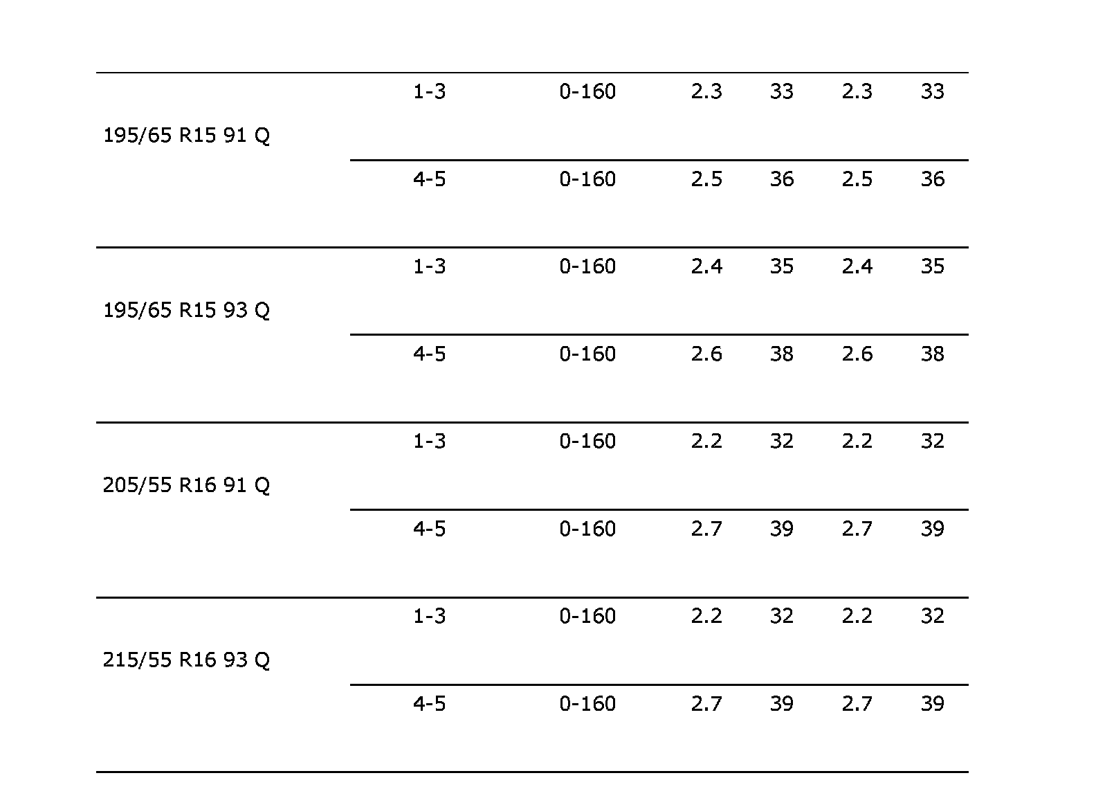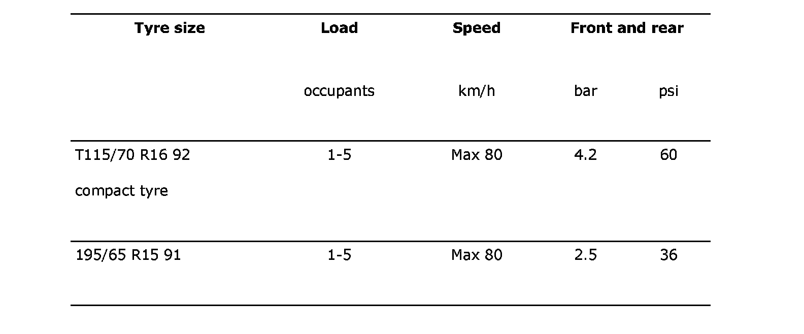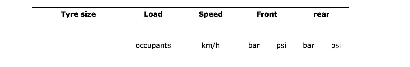 The following values for air pressure apply at 20°C. The air pressure will rise and drop 0.1 bar (2 psi) respectively for each 10°C change in temperature.