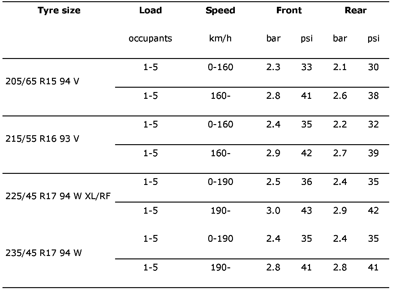 Recommended tire pressureThe air pressure should normally be taken on cold tires, which means that the tire must be at the same temperature as the surrounding air.