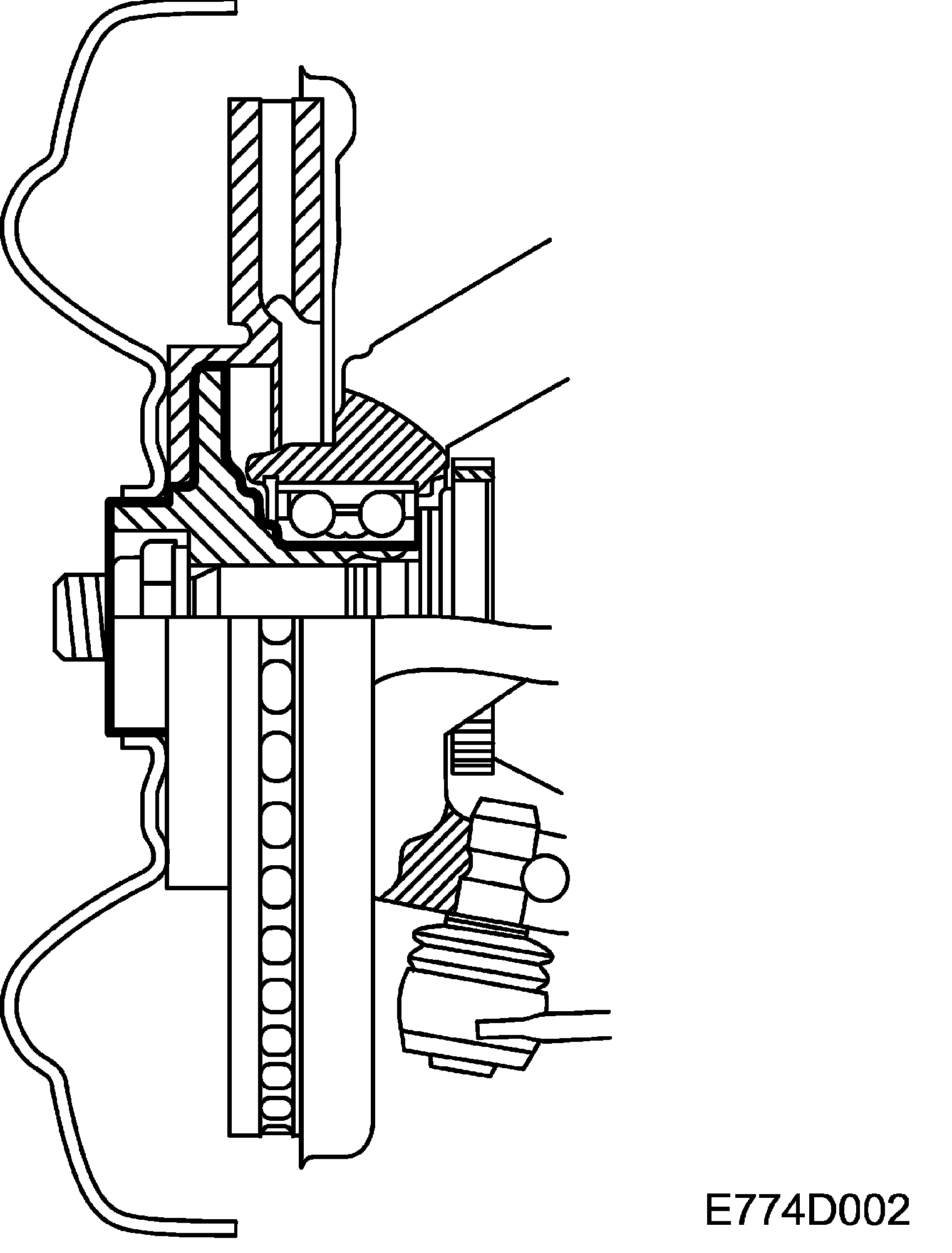 The front-wheel bearing is a press fit in the steering swivel member and secured with a circlip. The hub is then pressed into the bearing.
