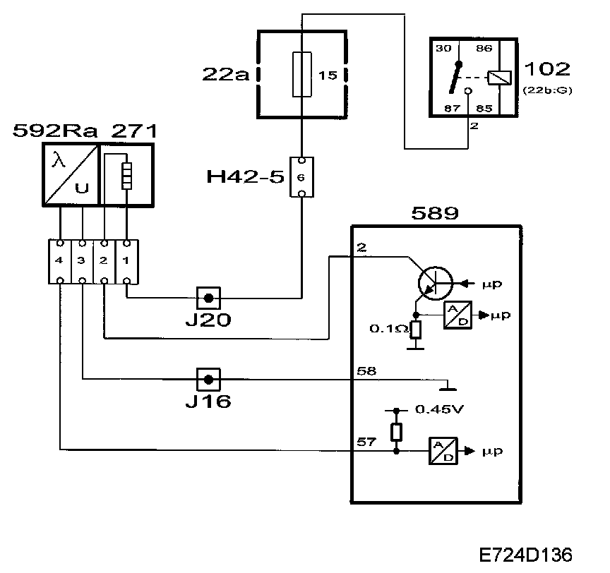 ^ If the current in the oxygen sensor pre-heating circuit is too high, diagnostic trouble code P1136 will be generated.