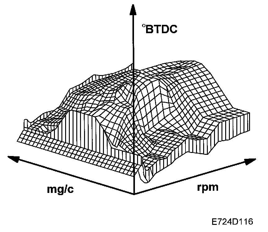 The ignition timing for each load and engine speed is written into a matrix in the control module memory. The ignition timing is optimized for the maximum engine torque at any one point, which coincides with the best efficiency and thereby the lowest fuel consumption.