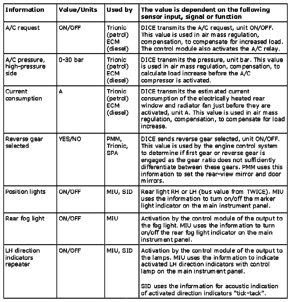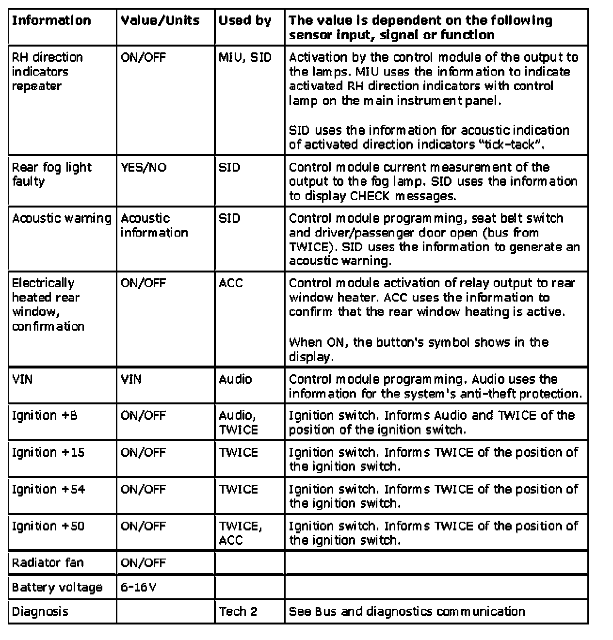 For a further description of the car's bus system, see System overview, bus and diagnostics communication, petrol.