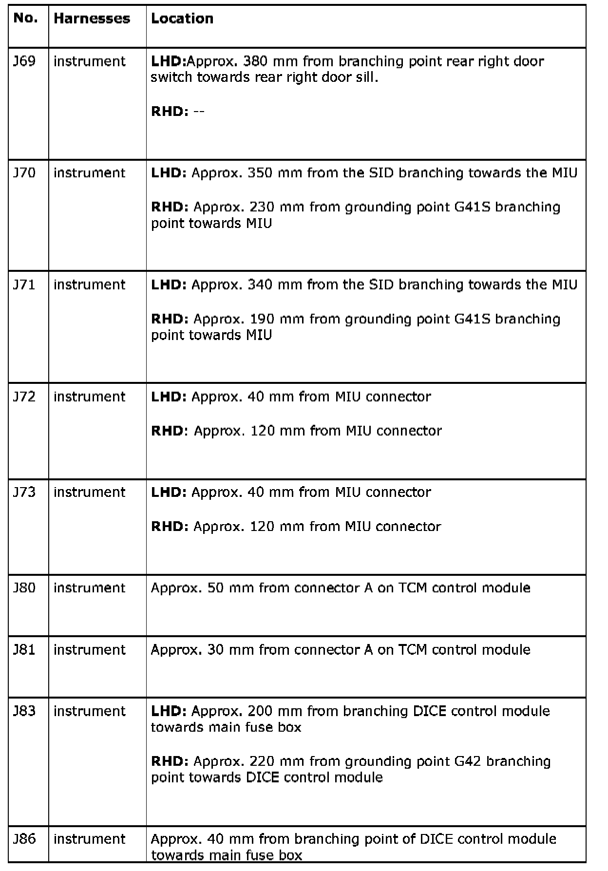 Crimp Connection J73, Instrument Harness