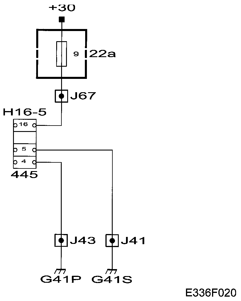 First check that no slide-out of the data link connector pins for current supply (+30 circuit) and ground has occurred. Then use a test lamp to check whether any lead and/or fuse supplying the data link connector with current is faulty.