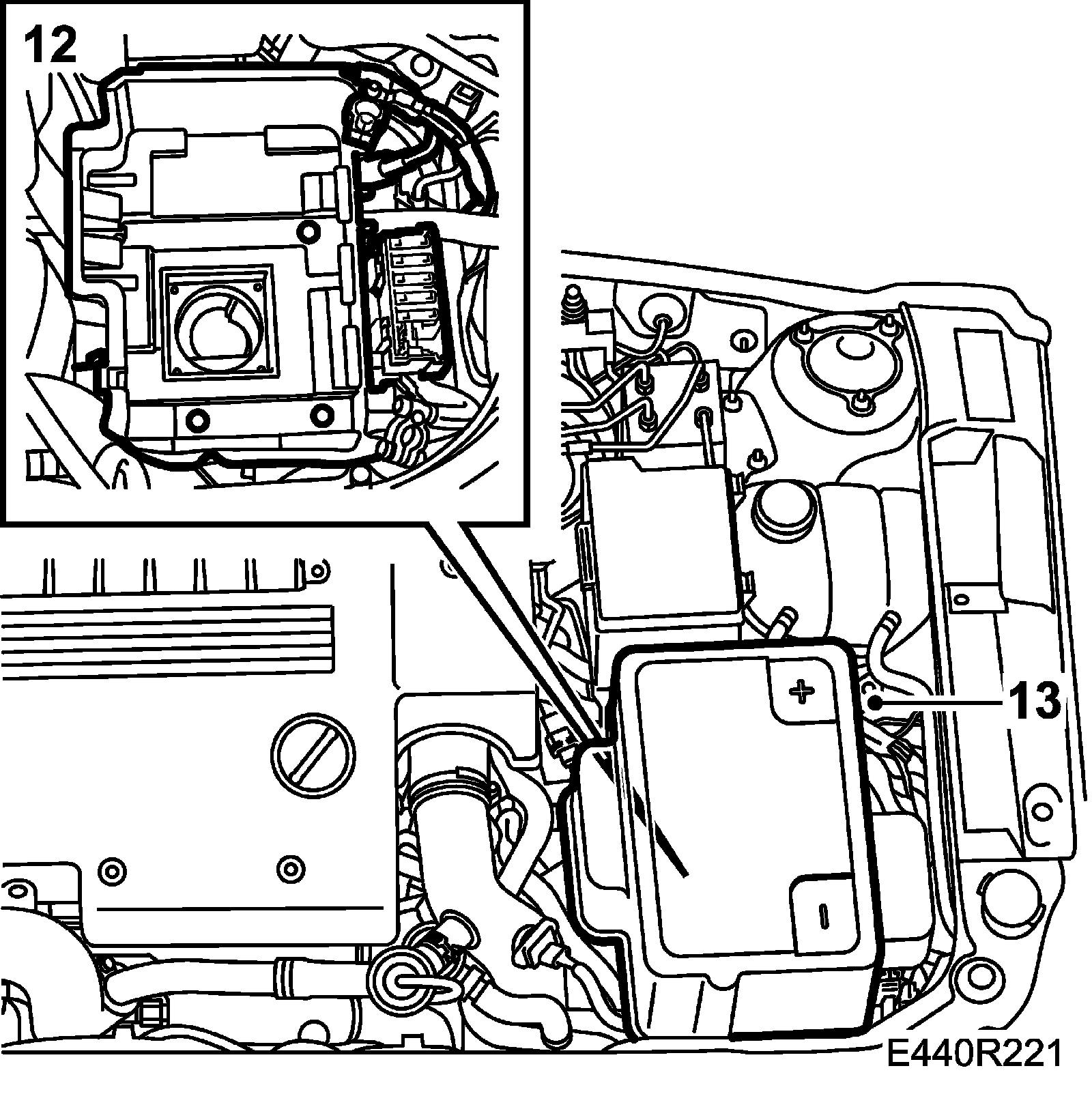 12. Fit the battery tray and MAXI fuse board.