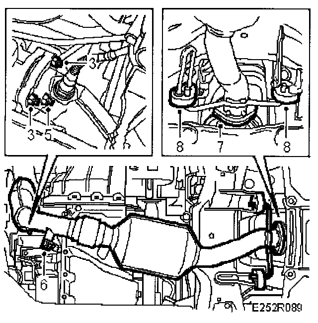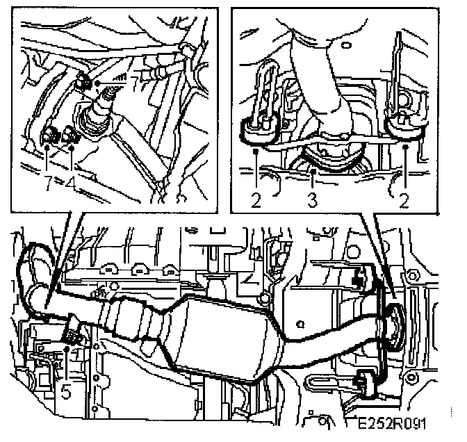 Important: The flexible section at the front of the exhaust system should not be bent out of line by more than 5°, i.e. if the front exhaust system is allowed to hang, it must not bend more than the sag caused by its own weight.
