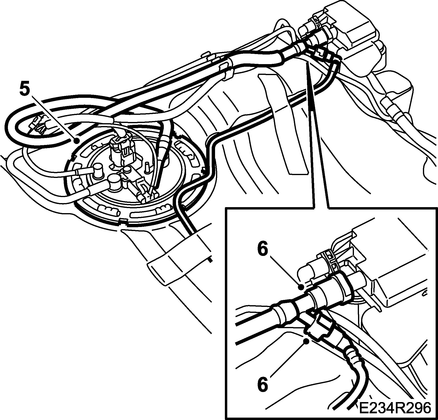 6. Connect the fuel lines to the attachments on the fuel tank.