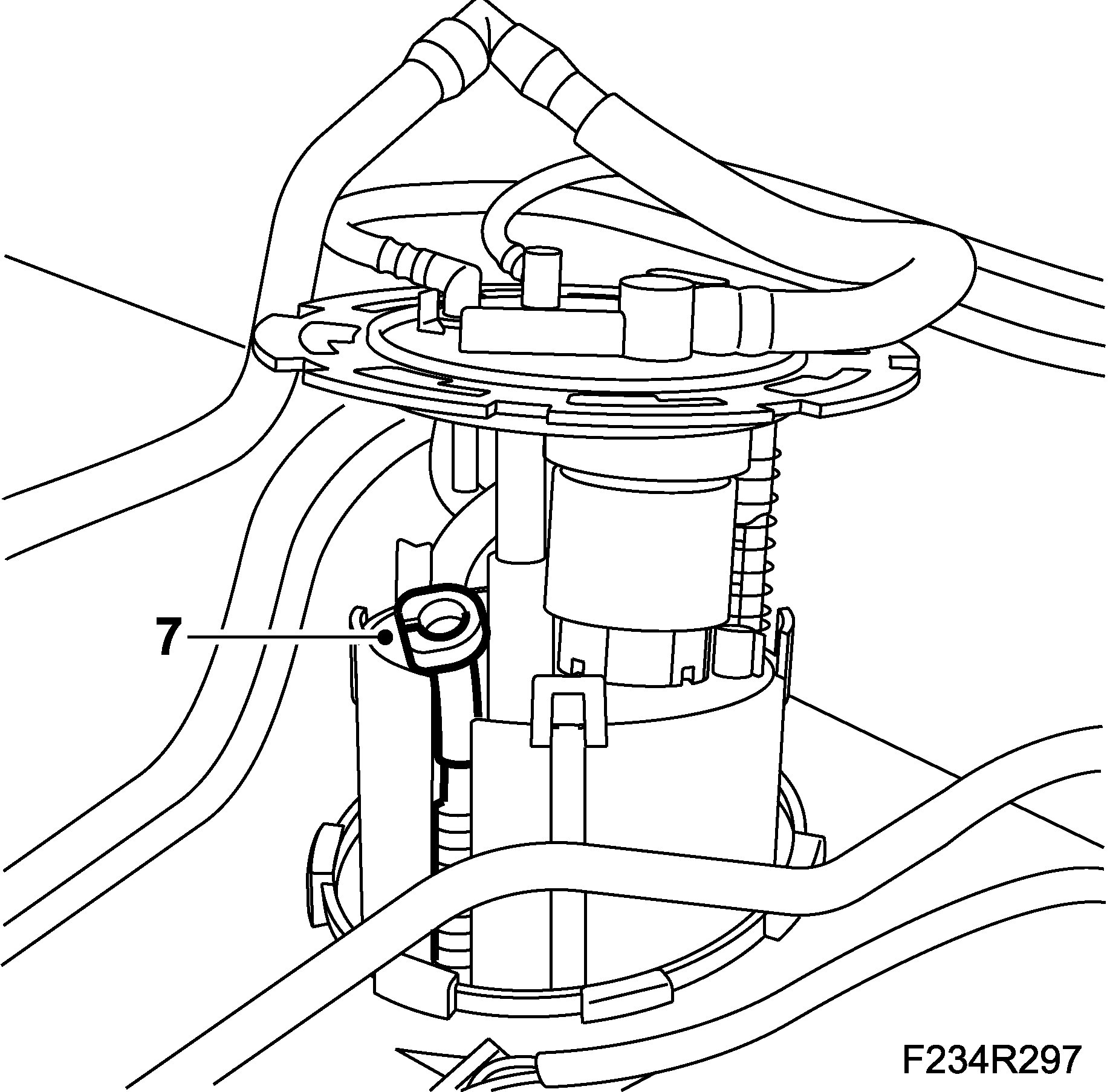 2. To avoid contaminants entering the fuel system, if necessary clean the underside of the tank before removing the fuel pump.