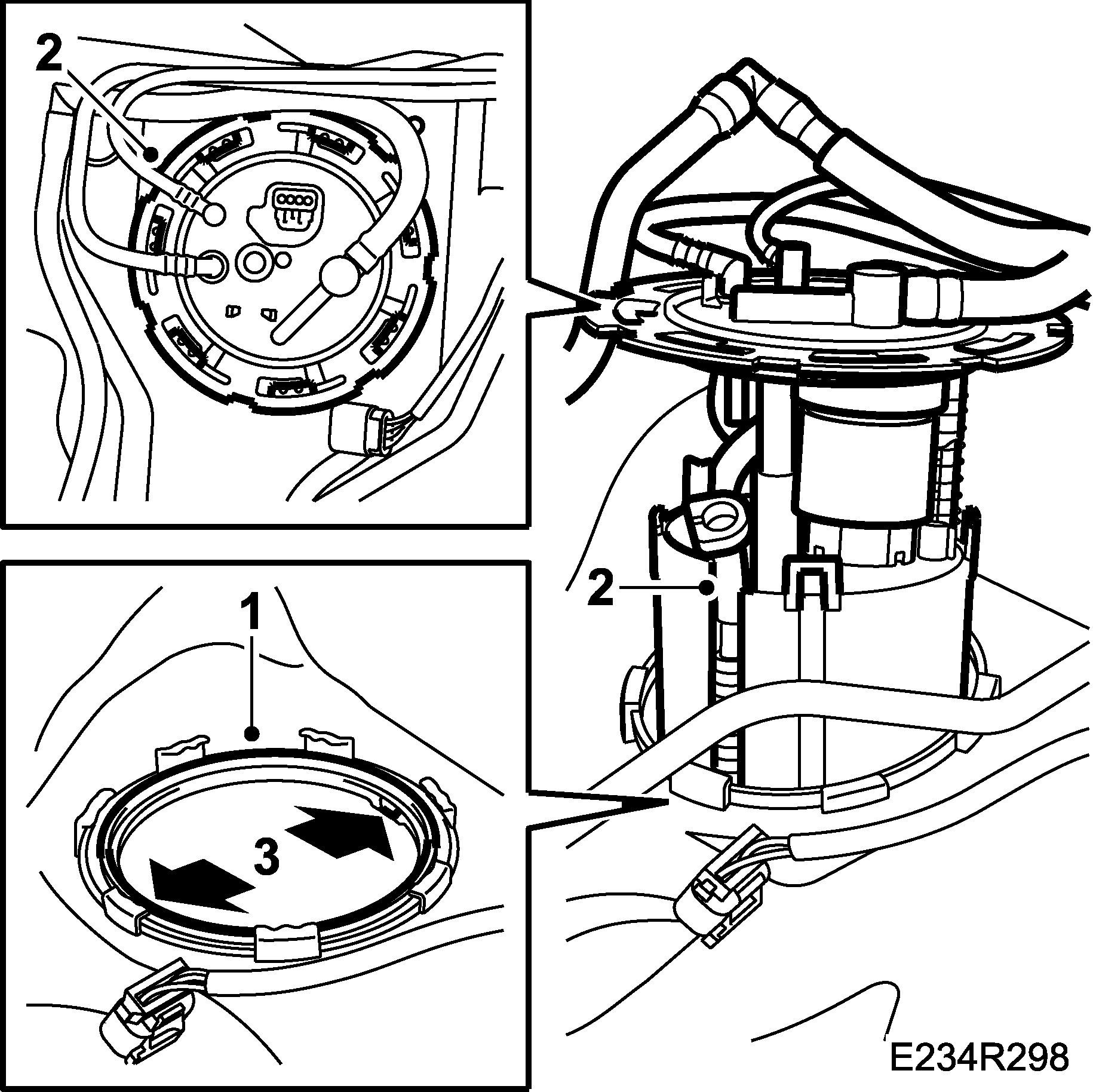 4. Tighten the fuel pump's fixture, use 83 96 194 To fit / To remove, fuel pump.