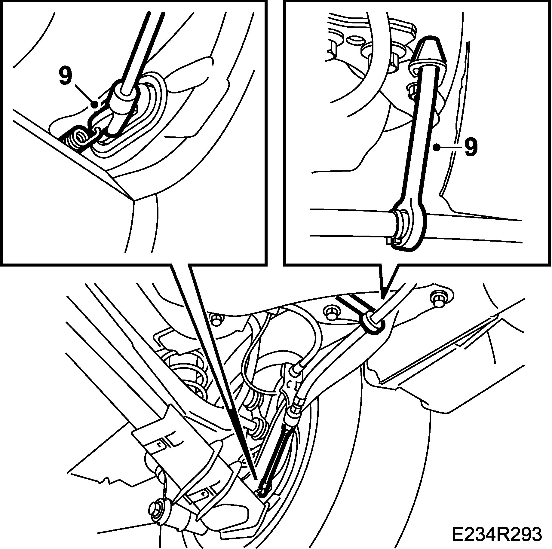 9. Fit both handbrake cables to the handbrake lever and suspension straps.