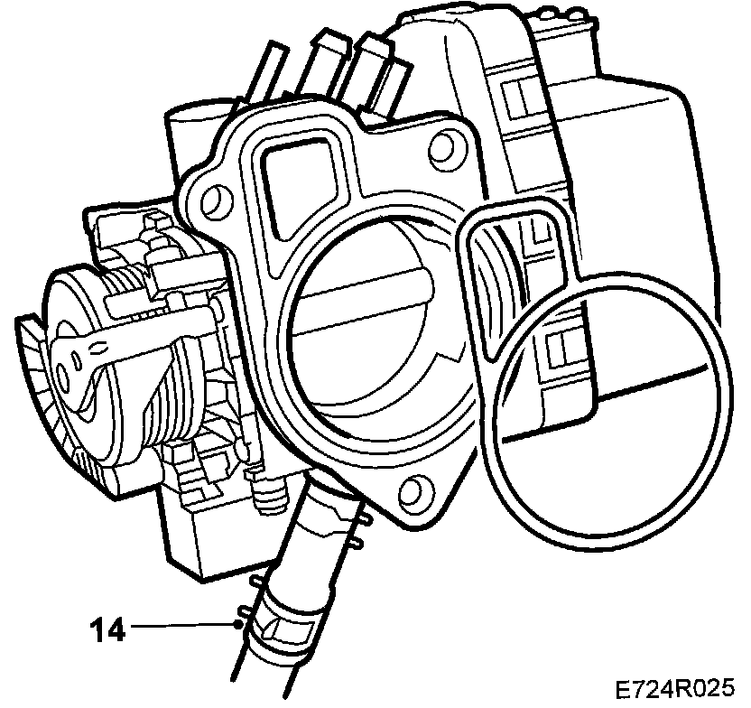 14. Lift up the throttle body and detach the hose under the limp-home solenoid.