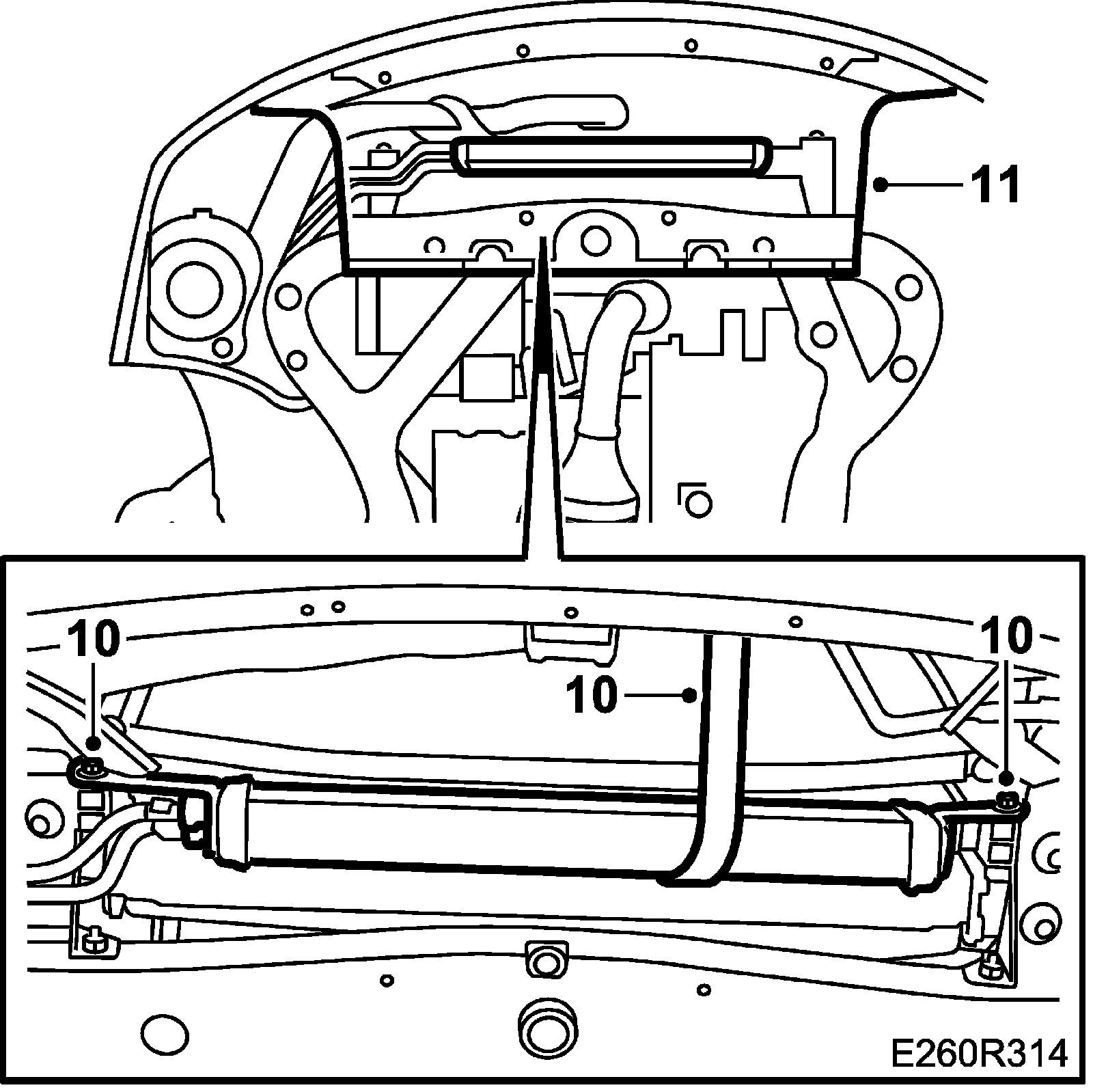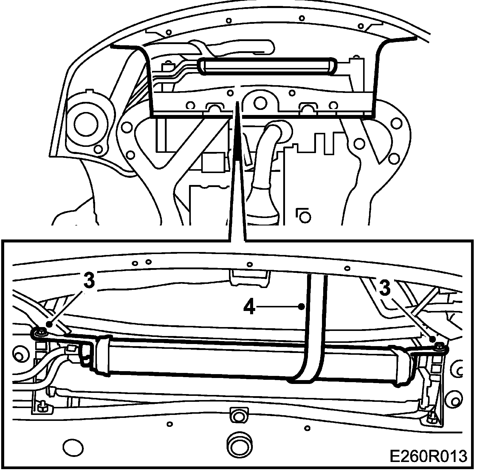 4. Suspend the oil cooler from the charge air cooler's bracket by means of cable ties.