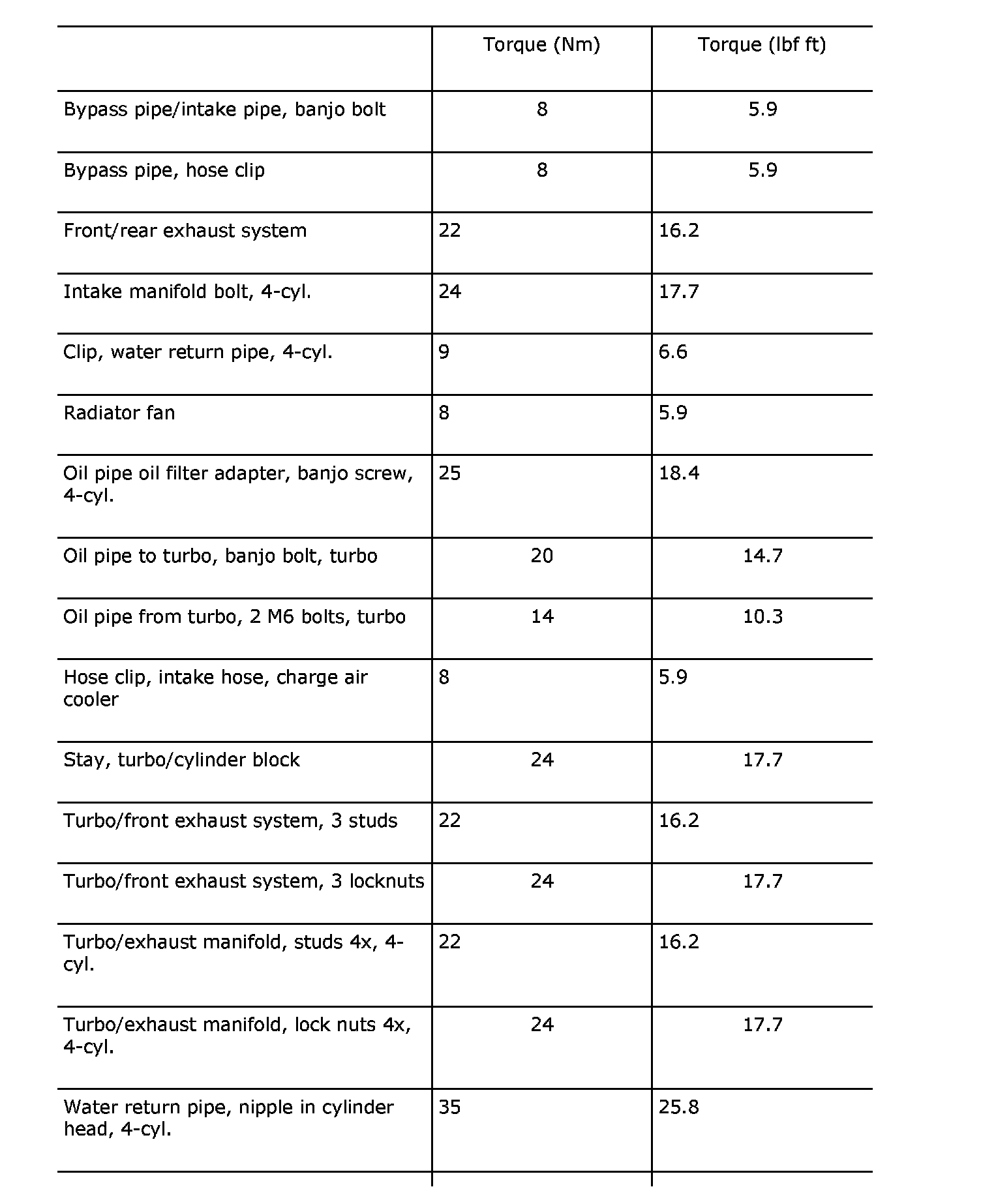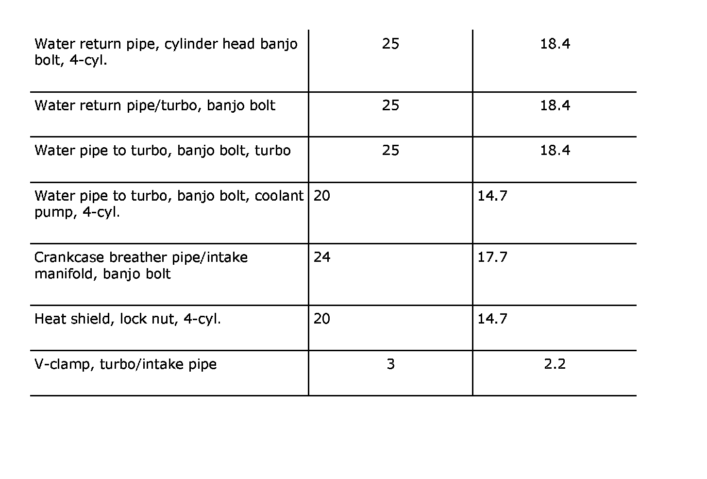 Tightening torques