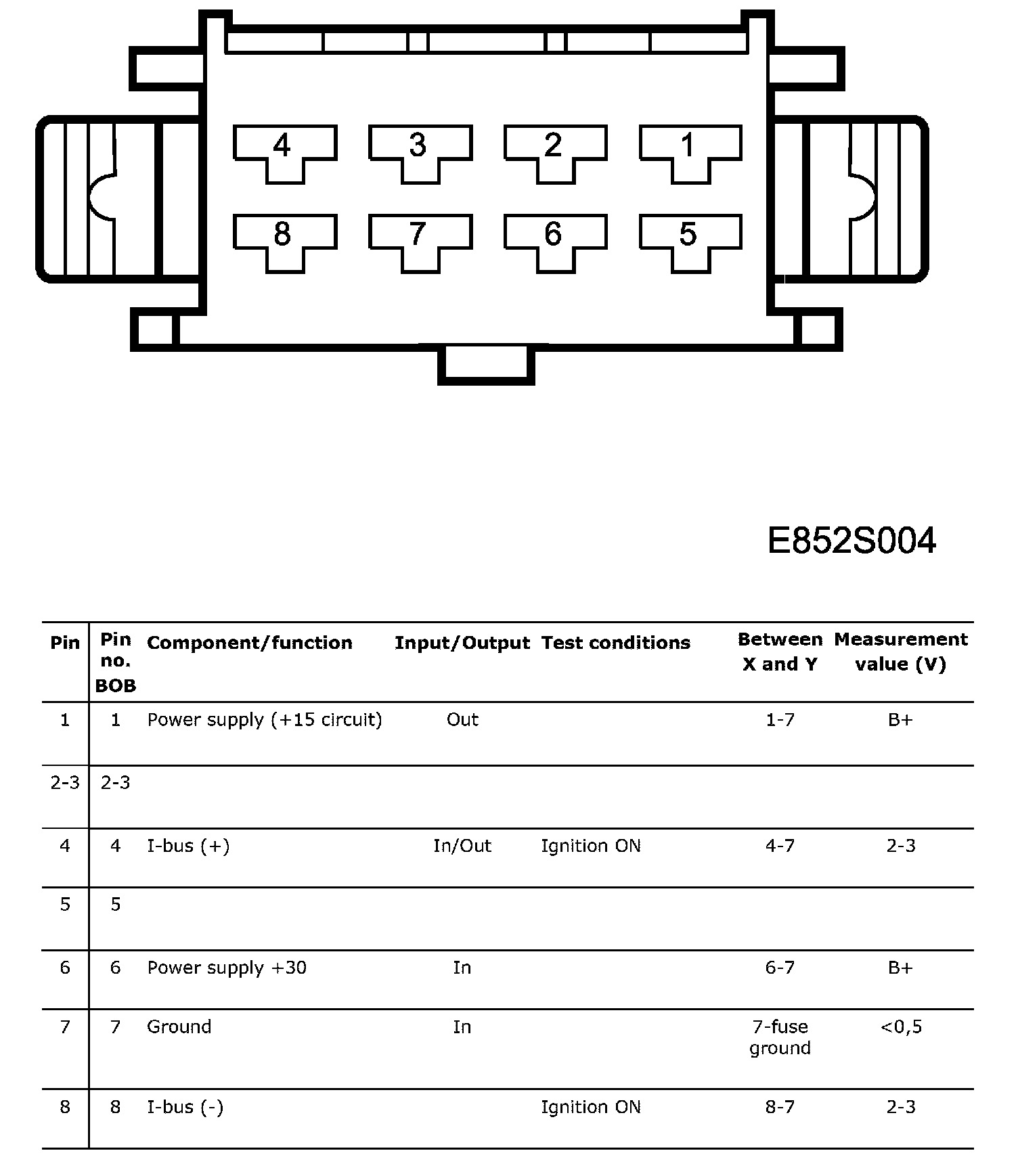 Connector 2 (K2), test readings