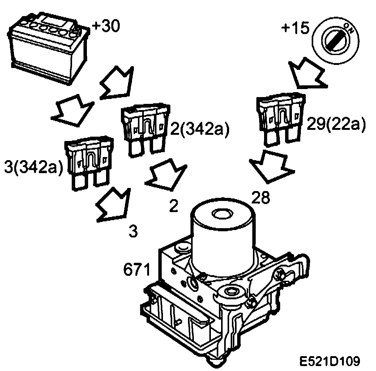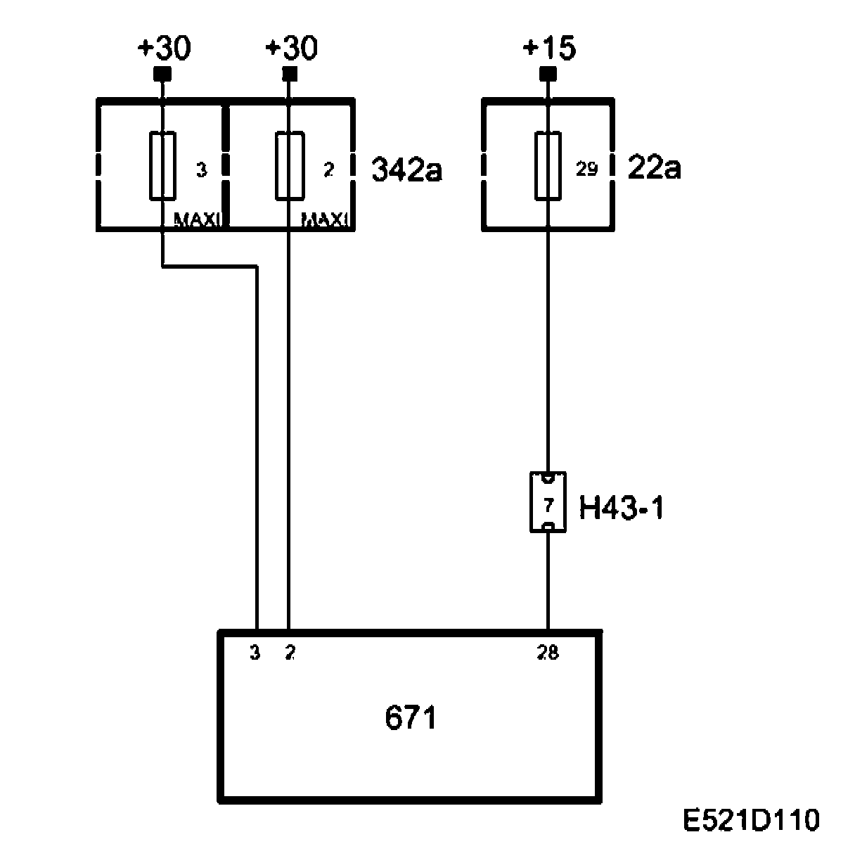 +30 voltage is supplied via Maxi fuses 2 and 3 (342a) to pins 2 and 3 respectively on the control module.