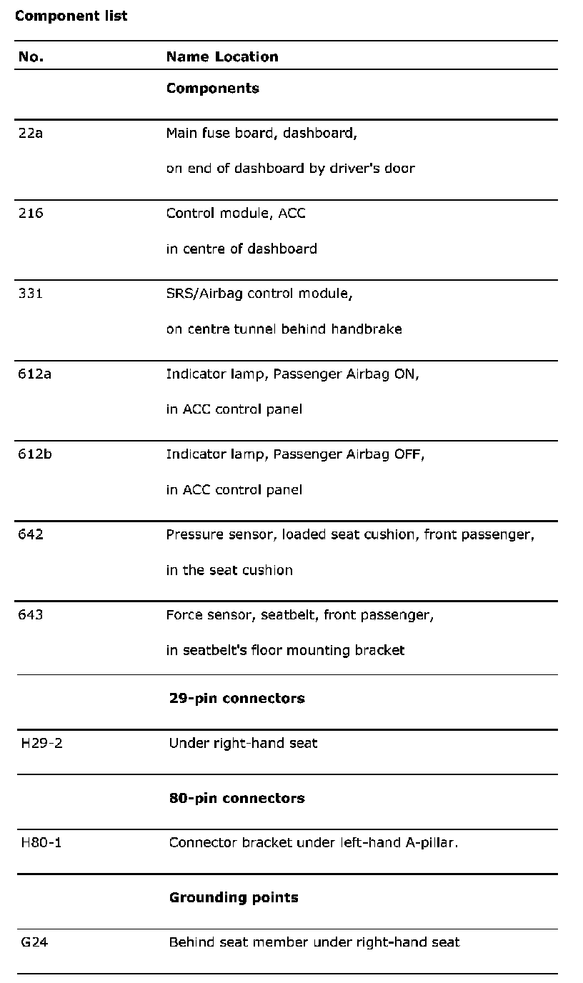 Air Bag Systems: Locations