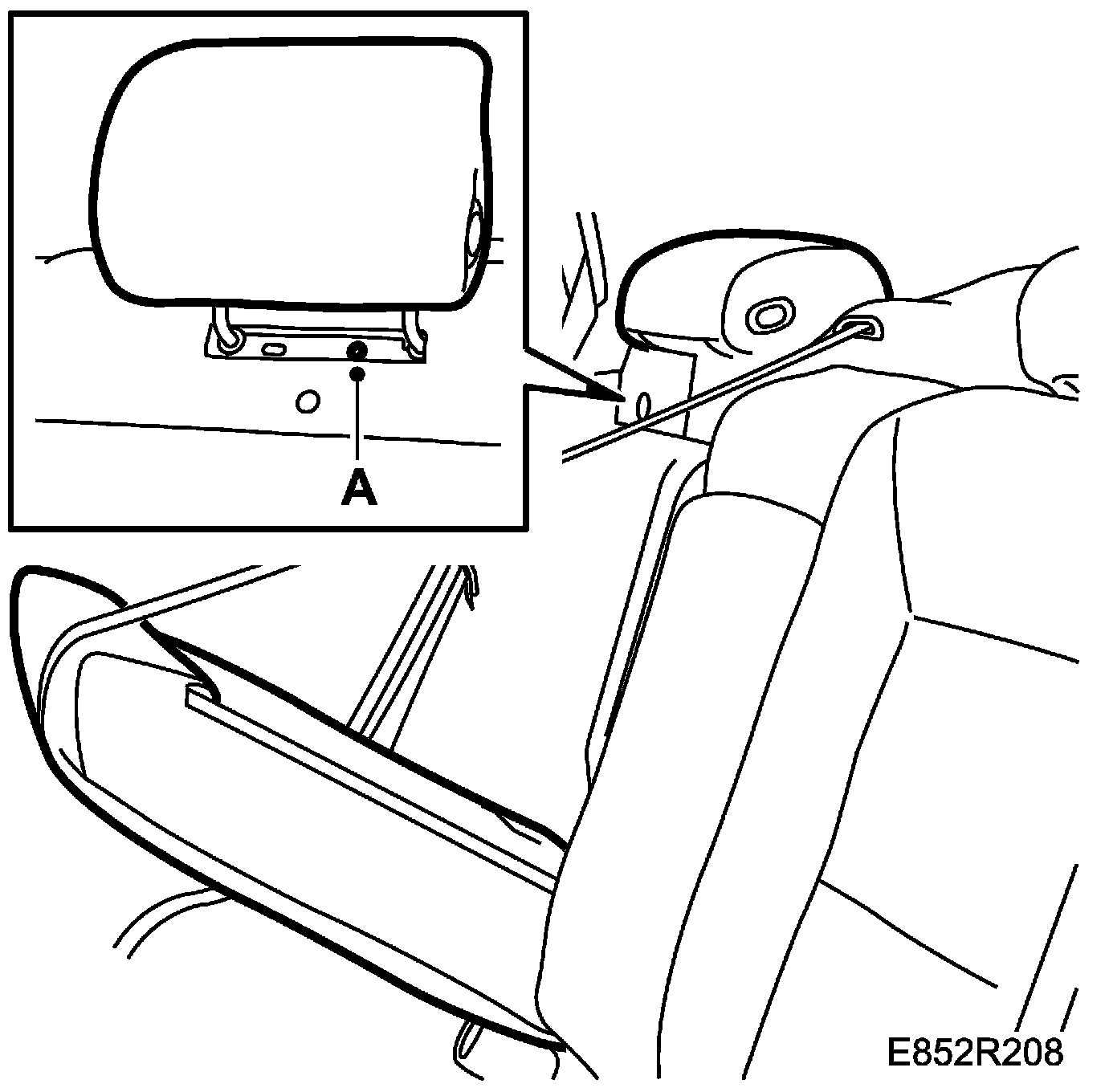 1. Fit the head restraint, 1 screw (A) and refit the plastic cover.