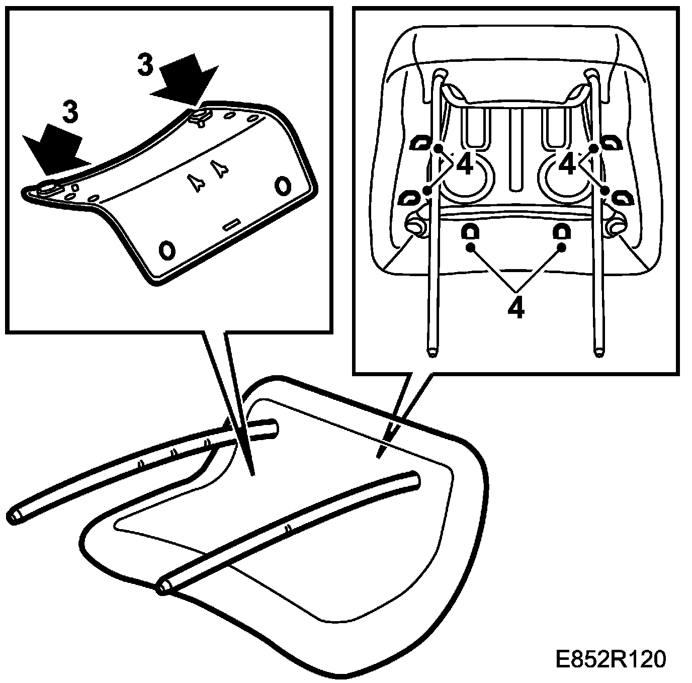 3. Fit the plastic cover on the rear of the head restraint and press it in place.