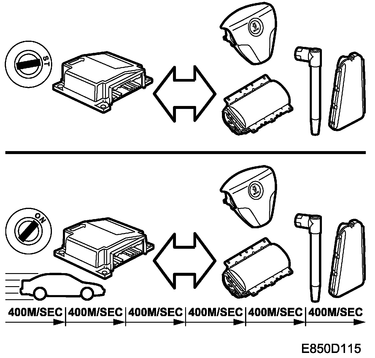 A poor ground connection will not cause a diagnostic trouble code to be generated. When connection to ground is restored after having been interrupted, it corresponds to power turn-on and the control module again runs through the on-board diagnostics program. The airbag warning lamp will then lights up for 3-4 seconds.