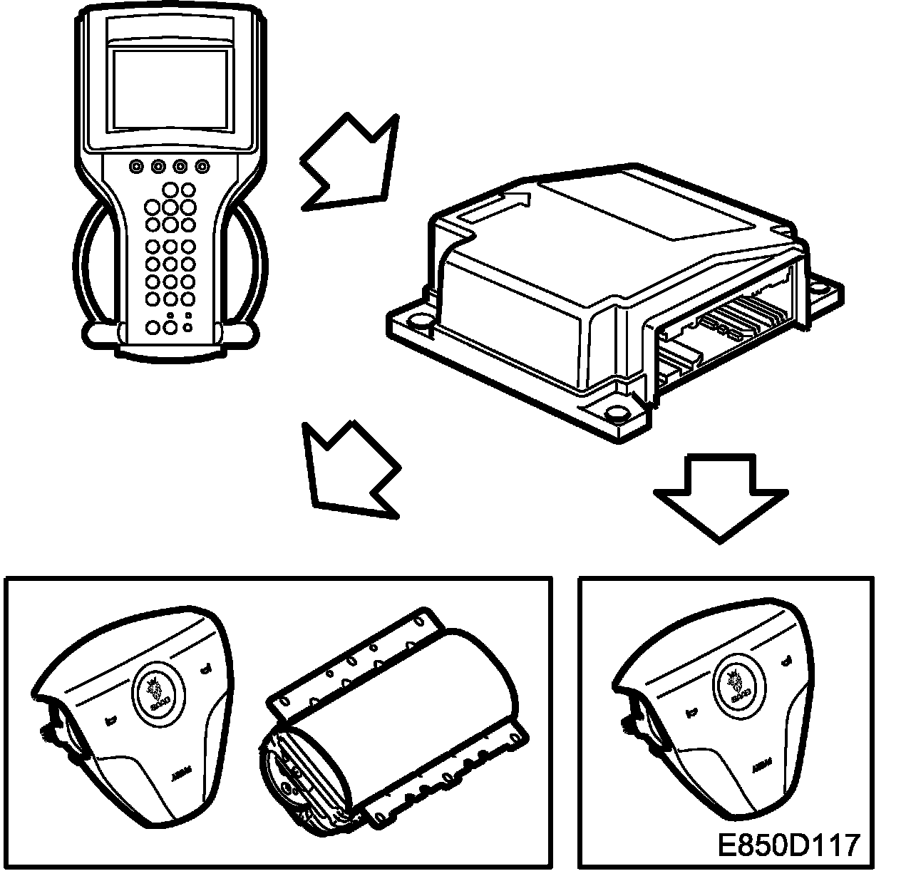 When the airbag control module is replaced, the spare parts control module must be programmed for the car in which it will be installed. This is done using a diagnostic tool.
