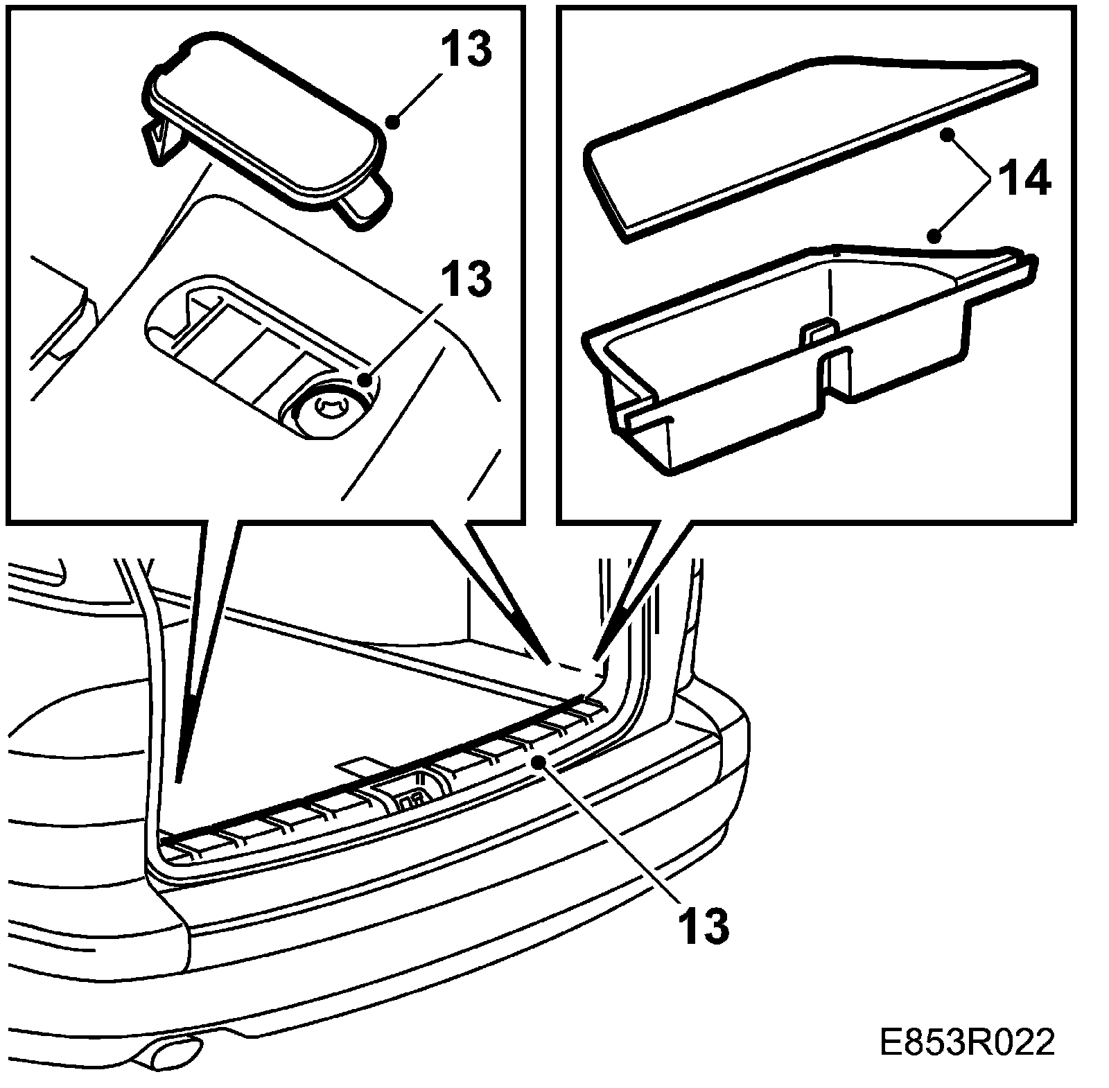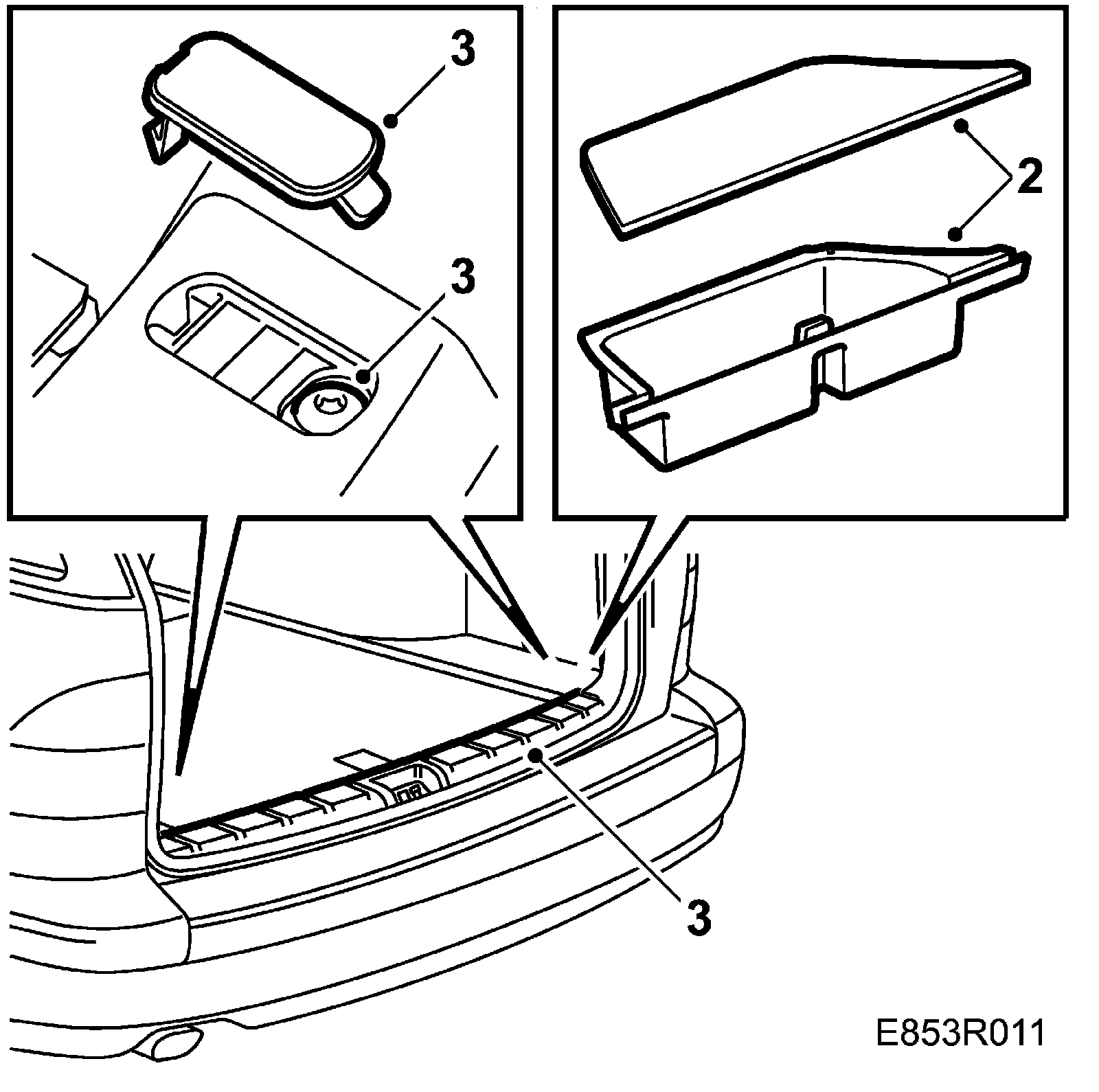 11. Fit the parcel shelf support, clips, 3 screws and 1 cover.