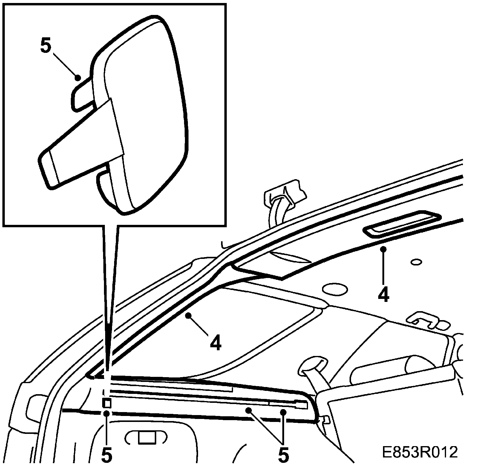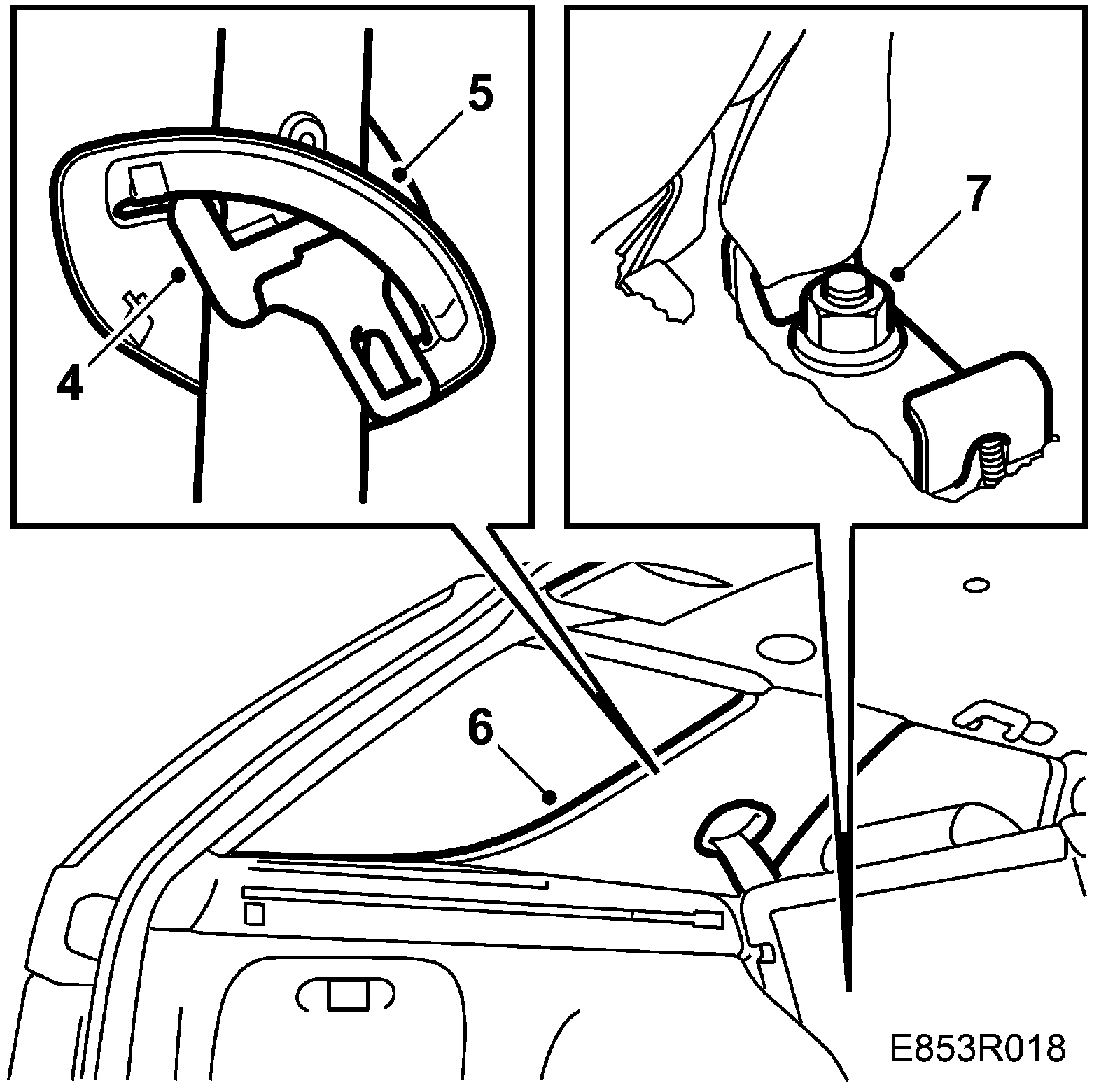 4. Detach the rear edge of the roof covering so that clearance for the D-pillar trim is obtained.