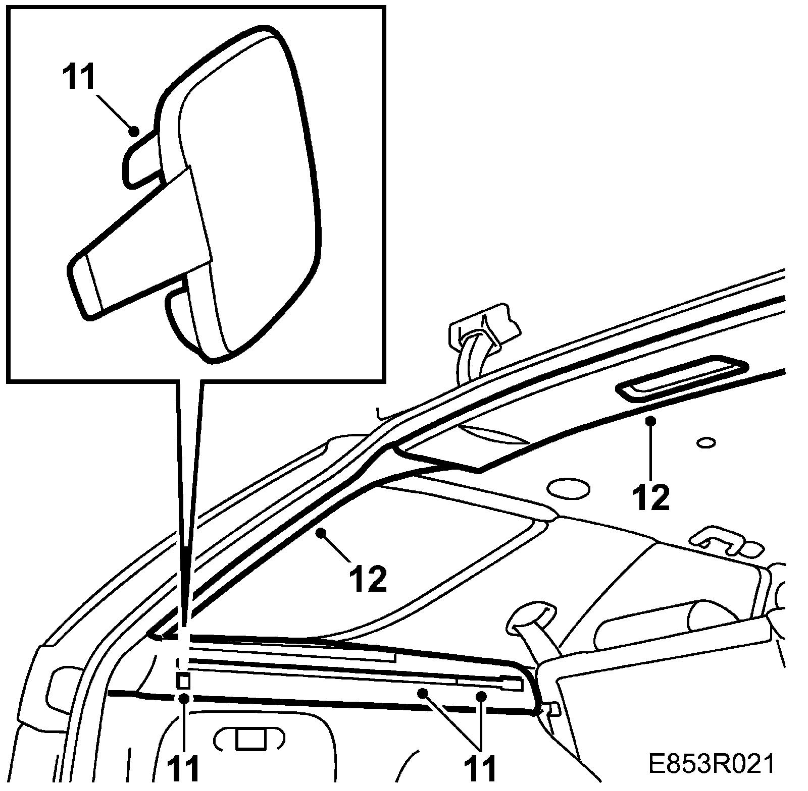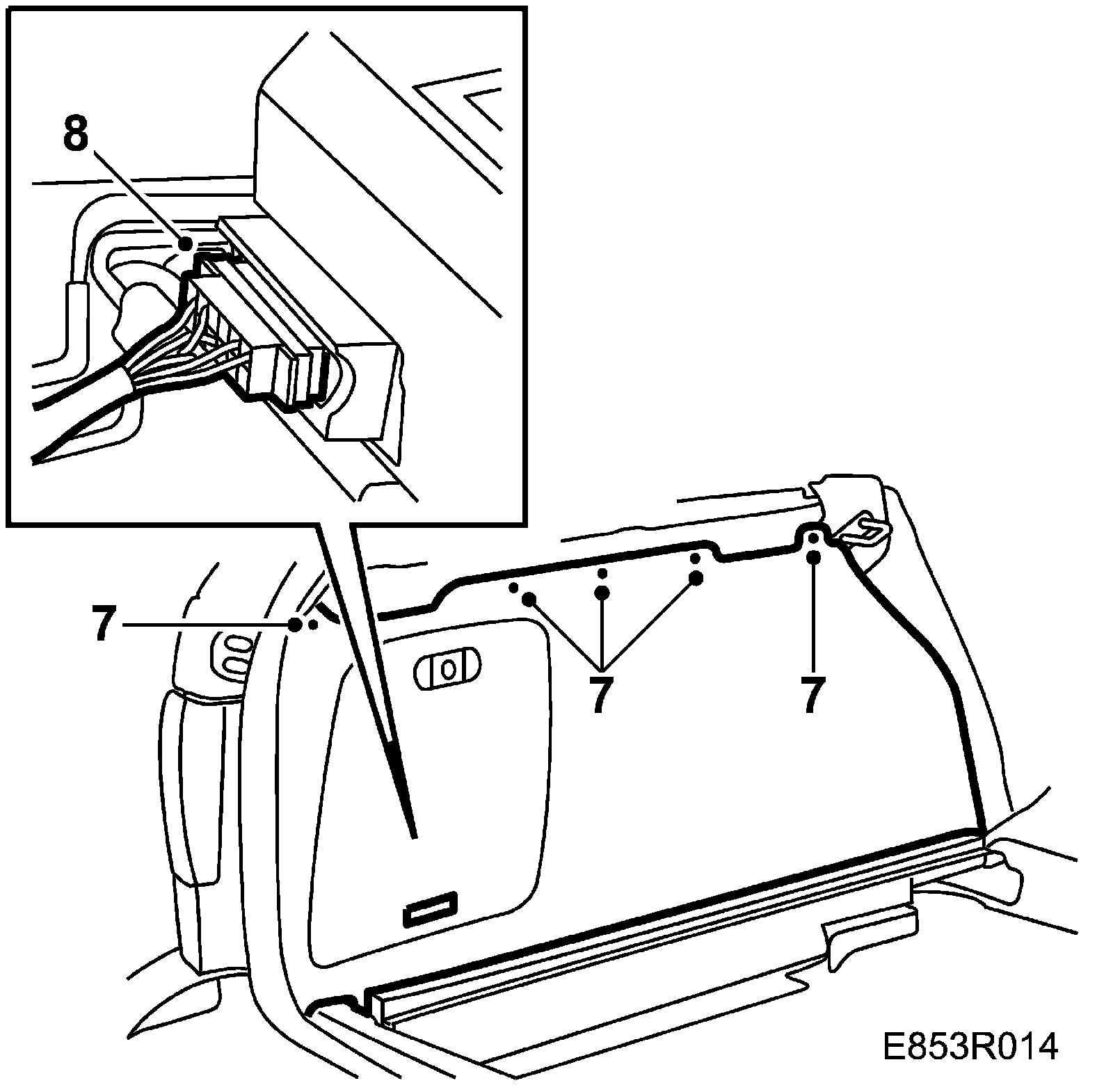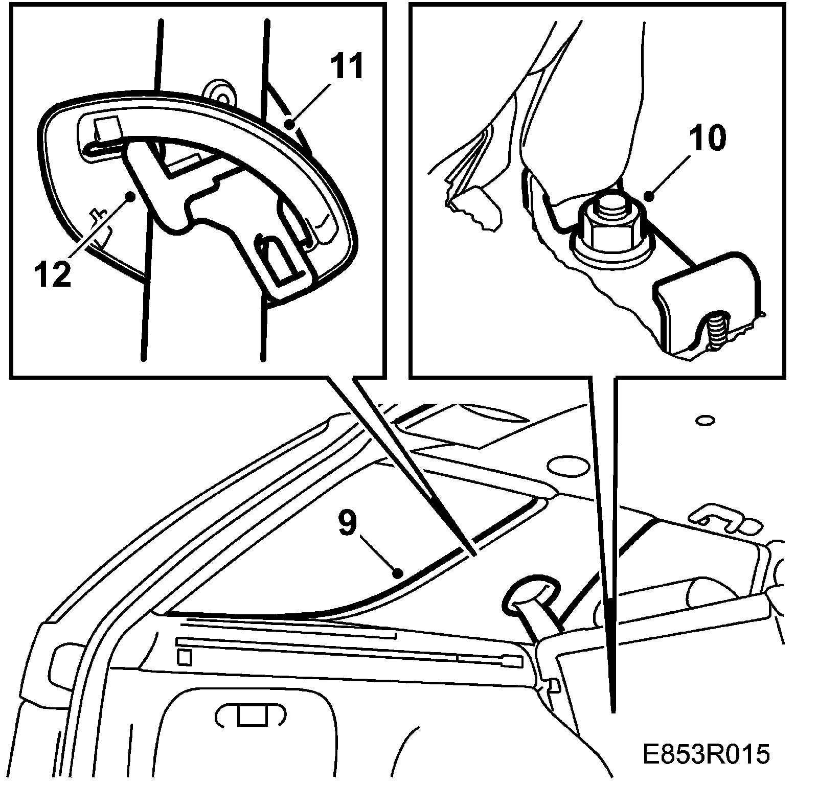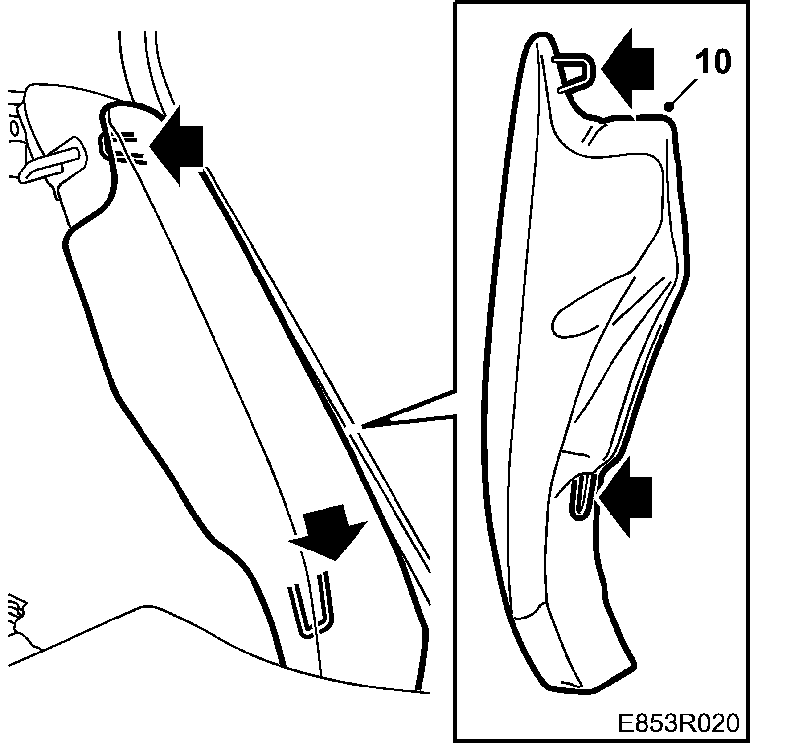 12. Fit the D-pillar trim, secured with clips. Press the rear roof covering into place.