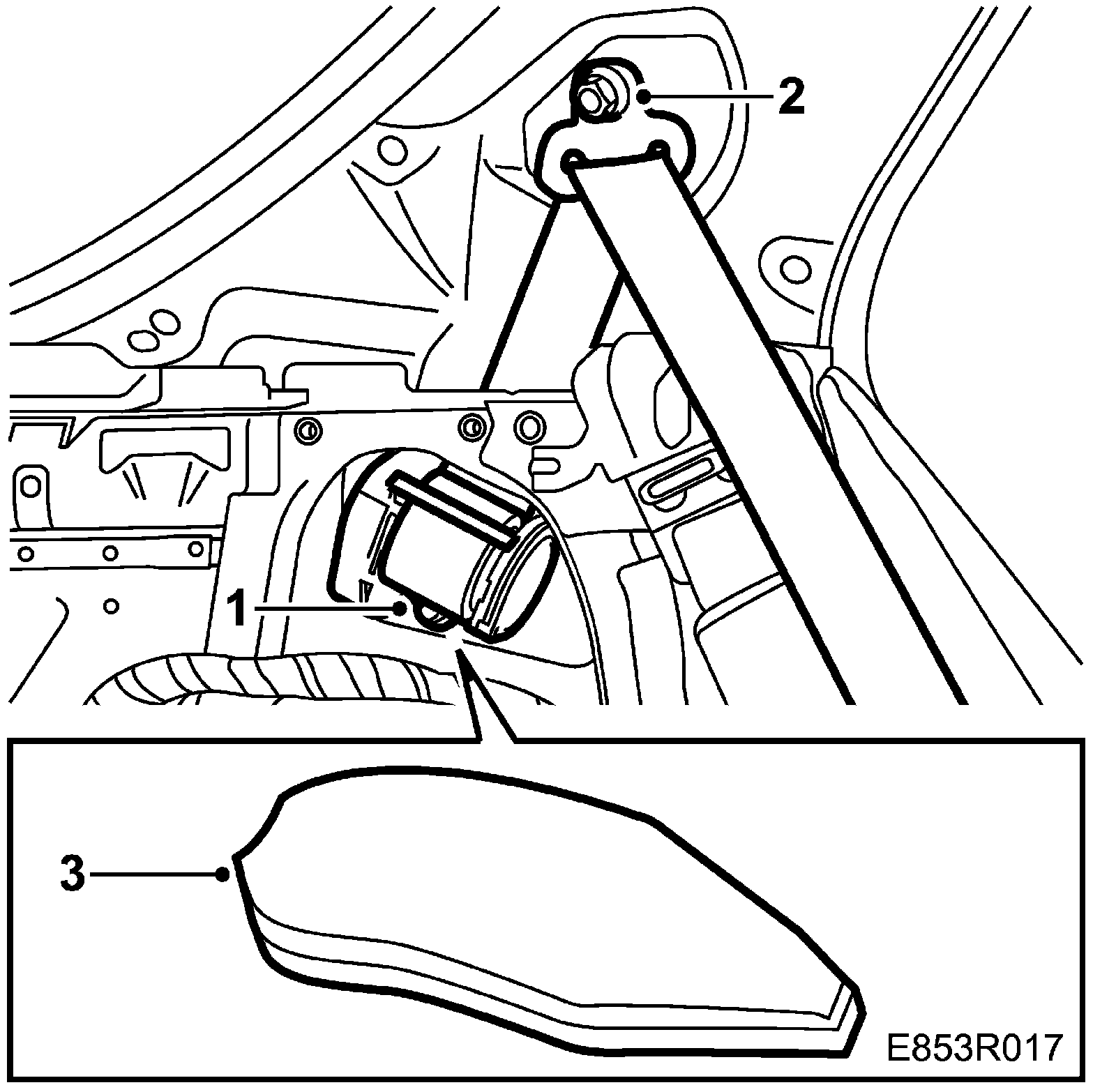 1. Guide the belt into place and fit the inertia reel on the C-pillar.
