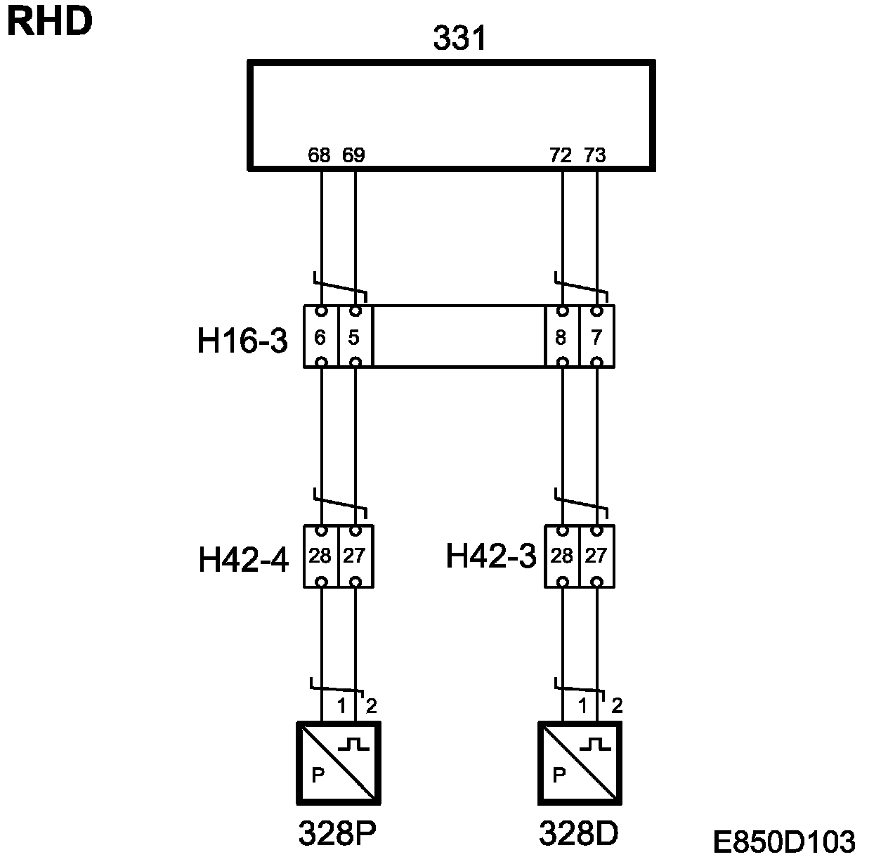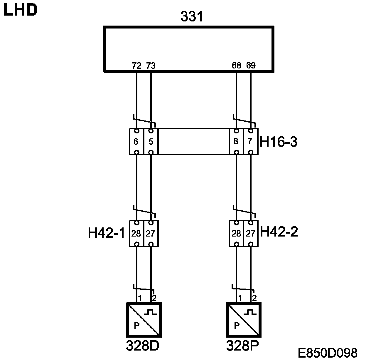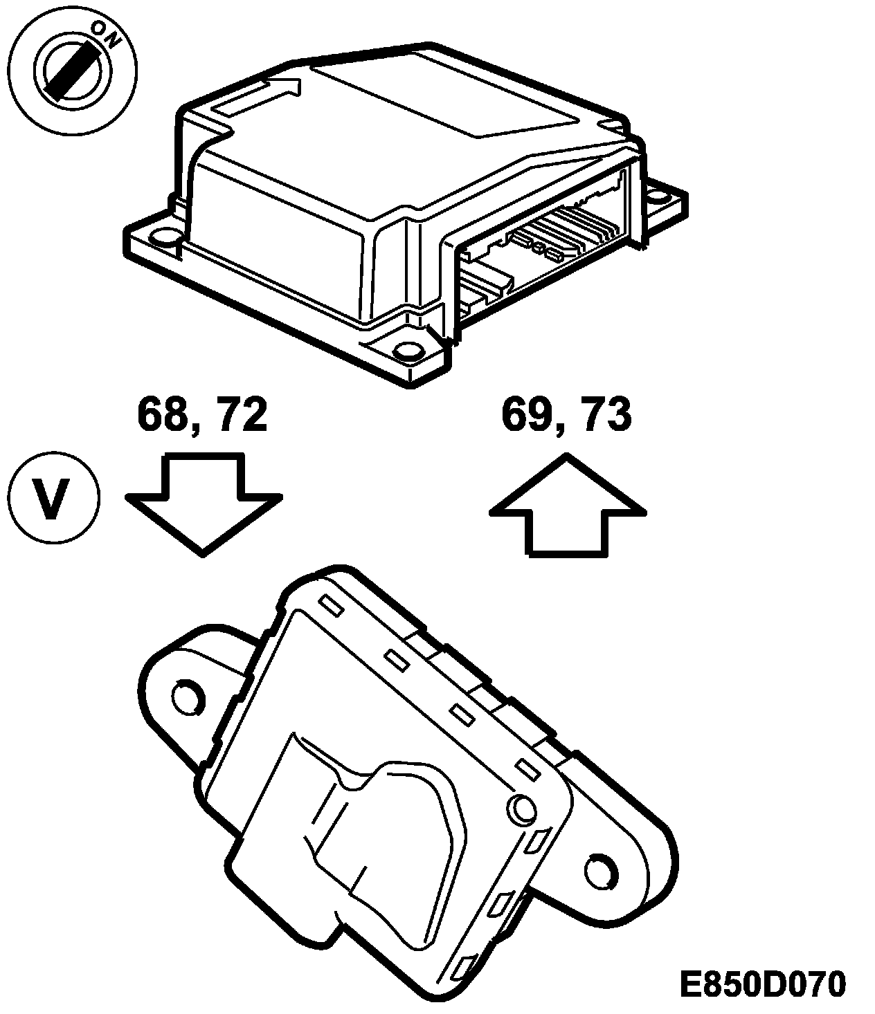 The side impact sensor is connected to the control module as indicated in Control module connections, Airbag (SRS) LHD and Airbag (SRS) RHD.