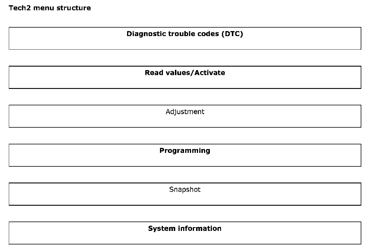 Tech 2 Menu Structure: