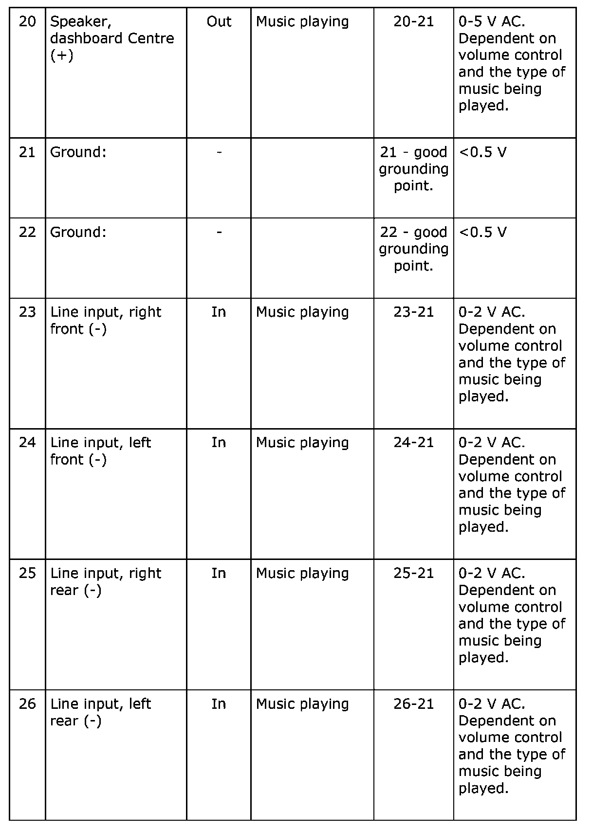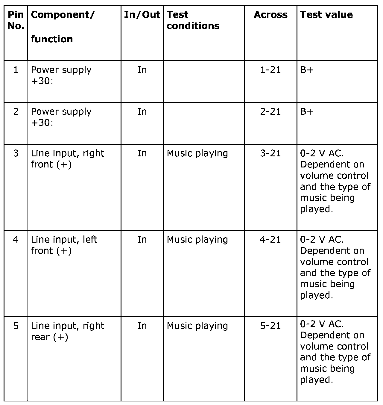 Test Readings, Amplifier Connections