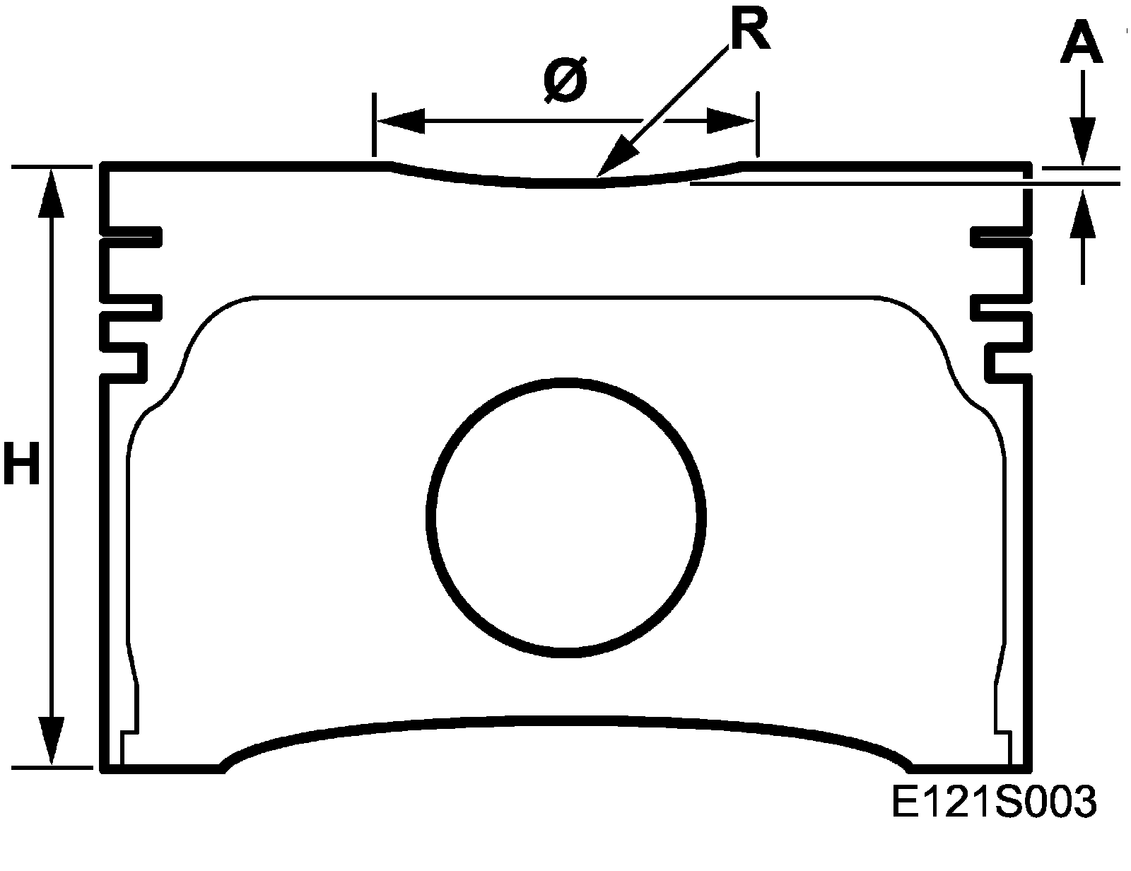 Piston diameter is measured at right angles to the gudgeon pin holes, 11 mm from the bottom of the piston.