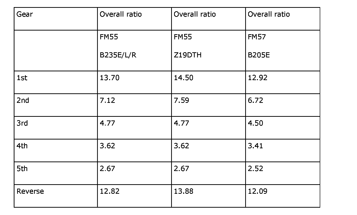 Final drive gear ratio FM57: