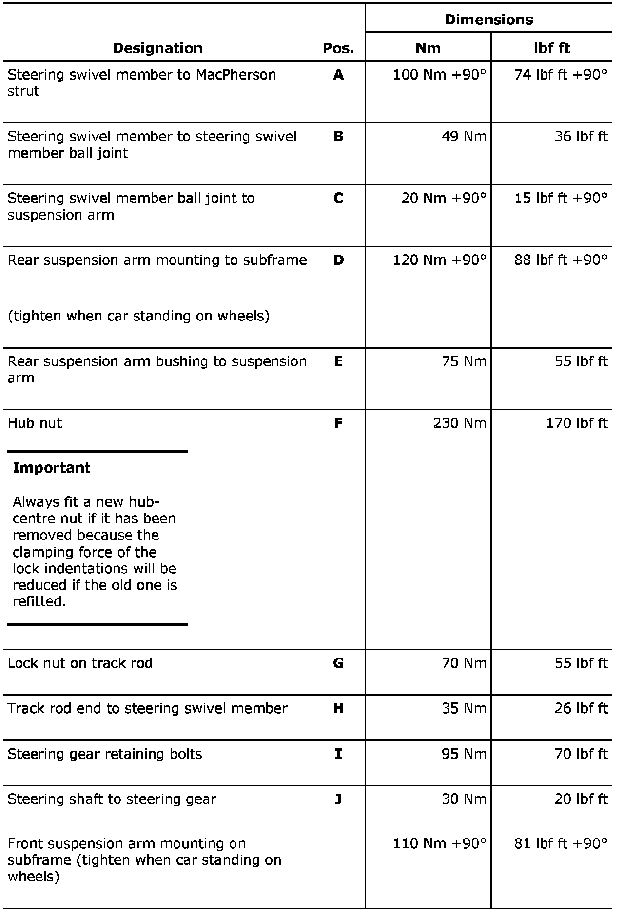 Tightening torques