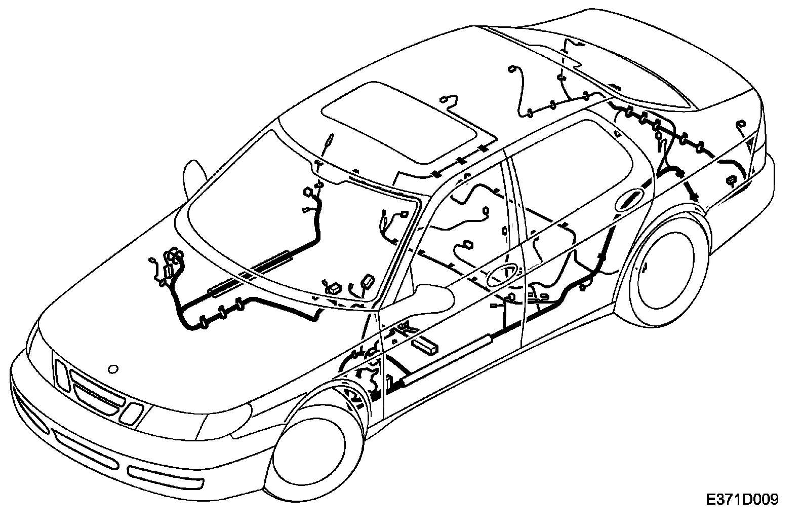 52. Release all wiring harness clips from the body in the luggage compartment.