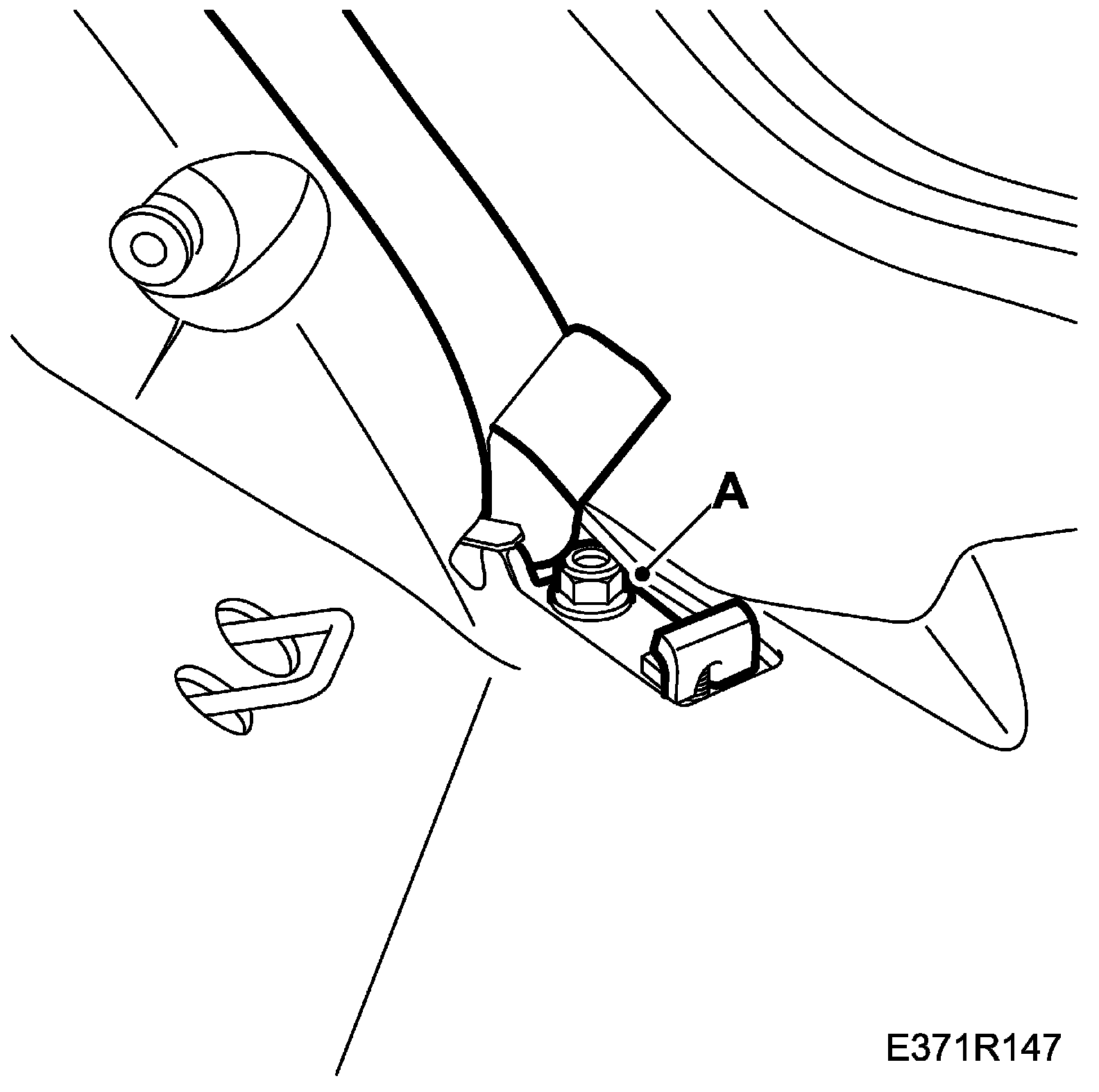 62. Fit the weld screw nut (A) on the driver's side.
